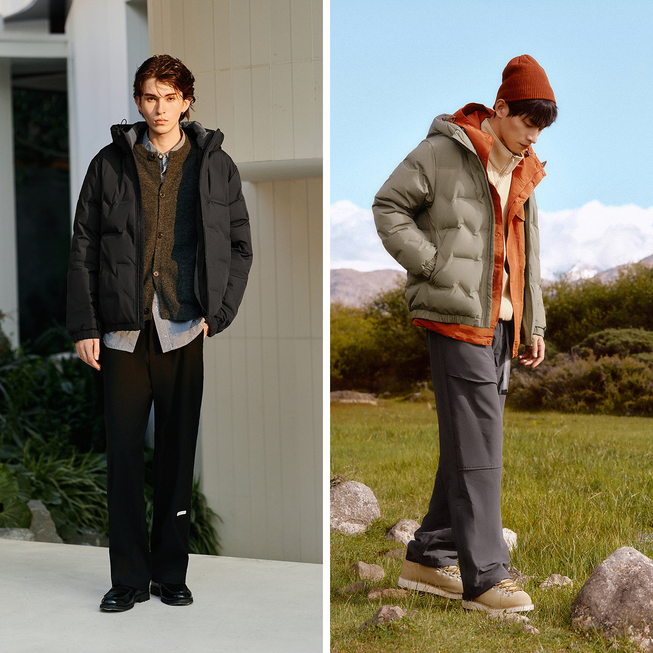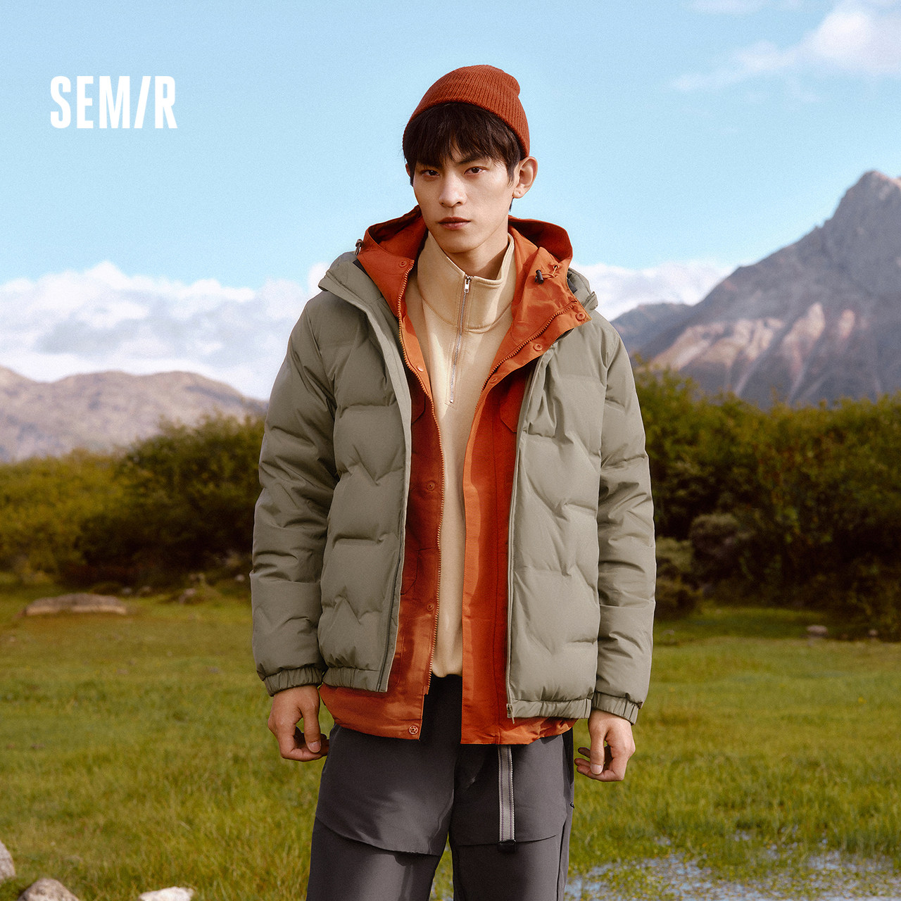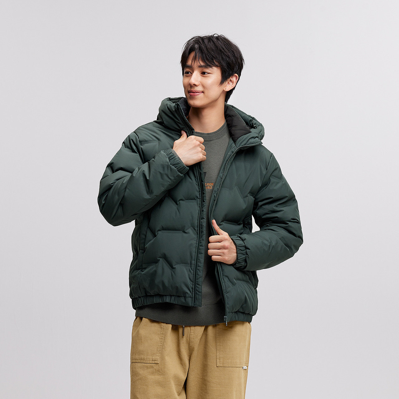 森马羽绒服男冬90绒子防泼水外套直充绒无缝压胶黑色百搭连帽上衣