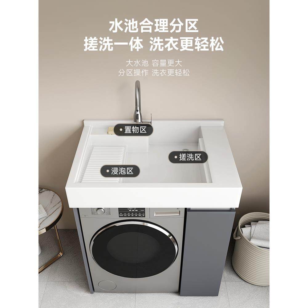 不锈钢洗衣柜小户型阳台洗衣机伴侣一体组合洗手池台盆带搓板定制