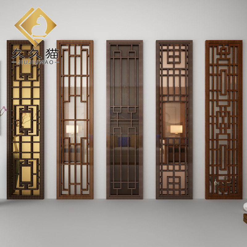 中式石材大板瓷砖背景墙胡桃木客厅电视墙实木花格护墙板橡木格栅