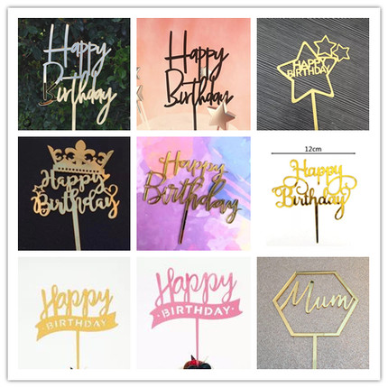 彩虹烘焙馆装饰生日快乐蛋糕插牌亚克力插件连笔字金色黑色玫瑰金