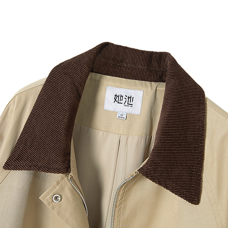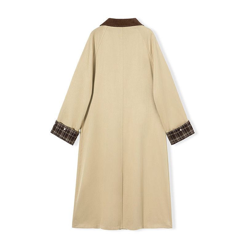 她池中长款风衣2025秋装新款女装撞色翻领工装风格纹拼接宽松外套
