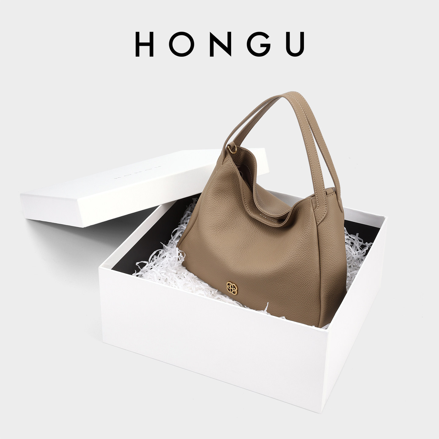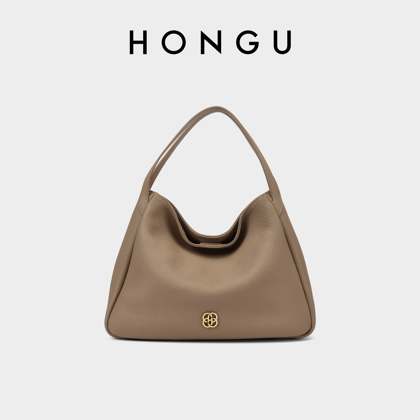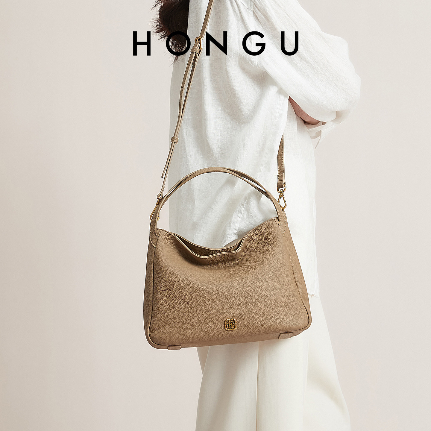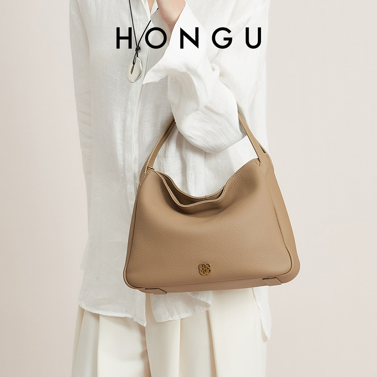 HONGU极简风头层牛皮腋下包女轻