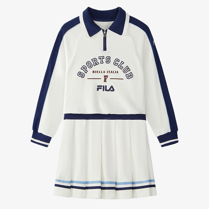 【螨消消】FILA斐乐儿童抗菌裙子春秋季新款女中大童针织连衣裙