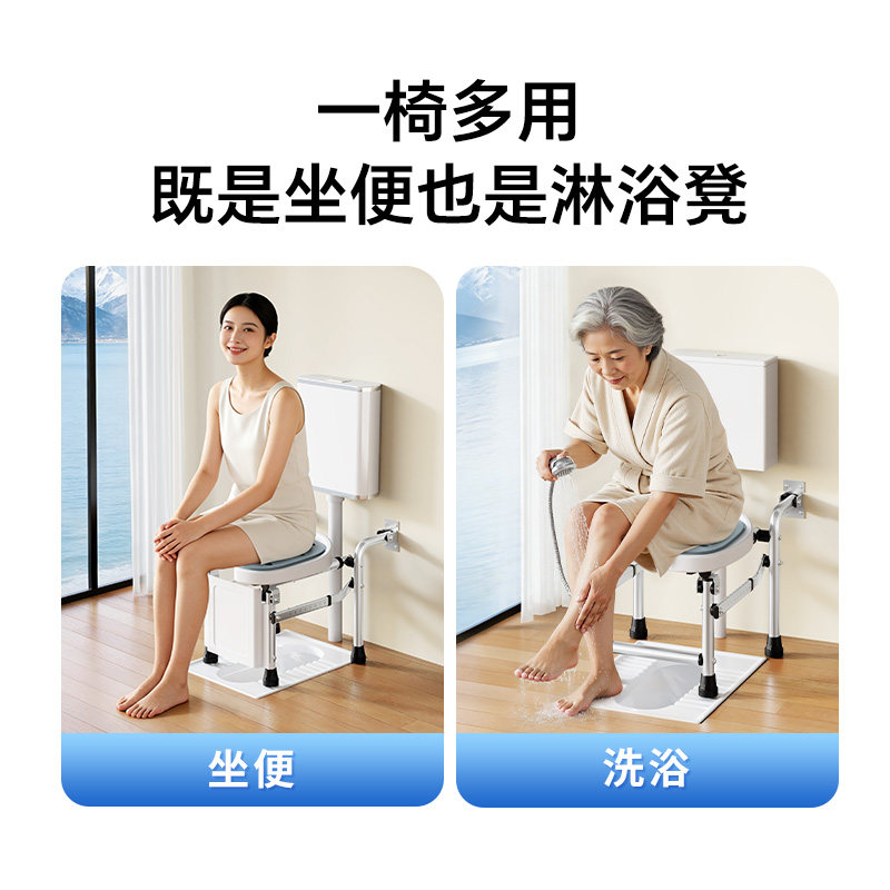 免打孔老人专用厕所坐便椅蹲便架