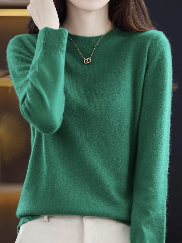 鄂尔多斯市羊绒衫女圆领针织毛衣秋冬宽松大码内搭显示打底衫秋冬