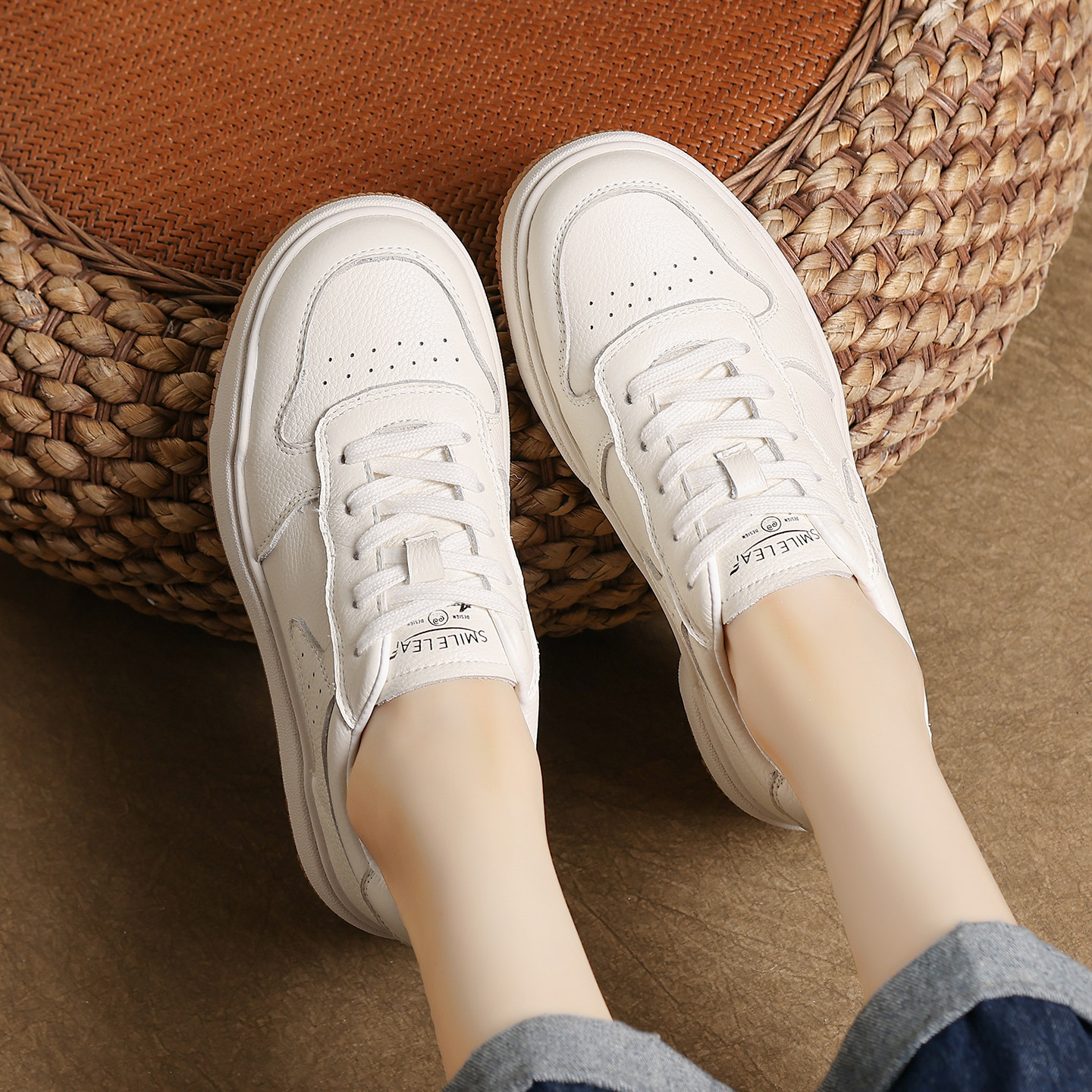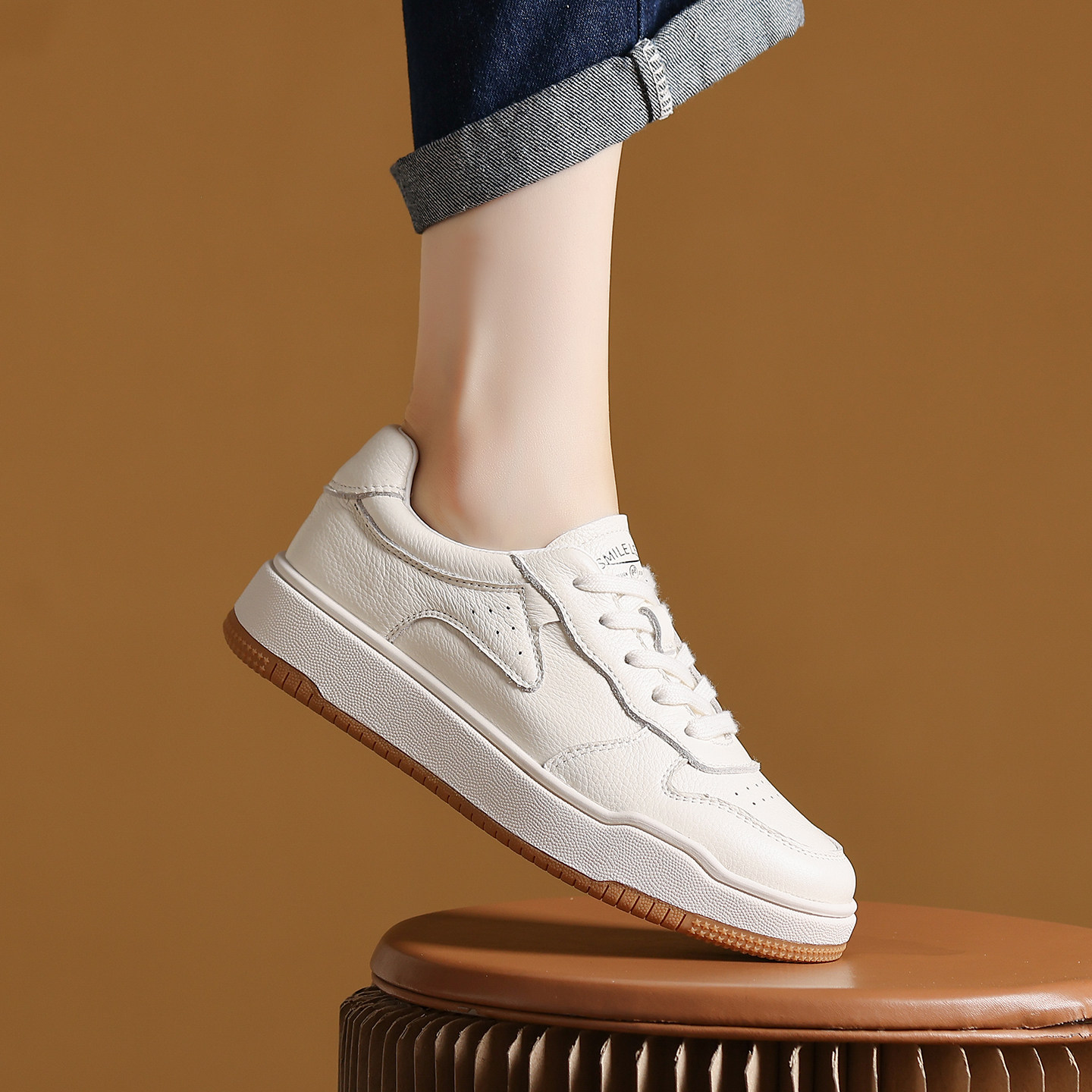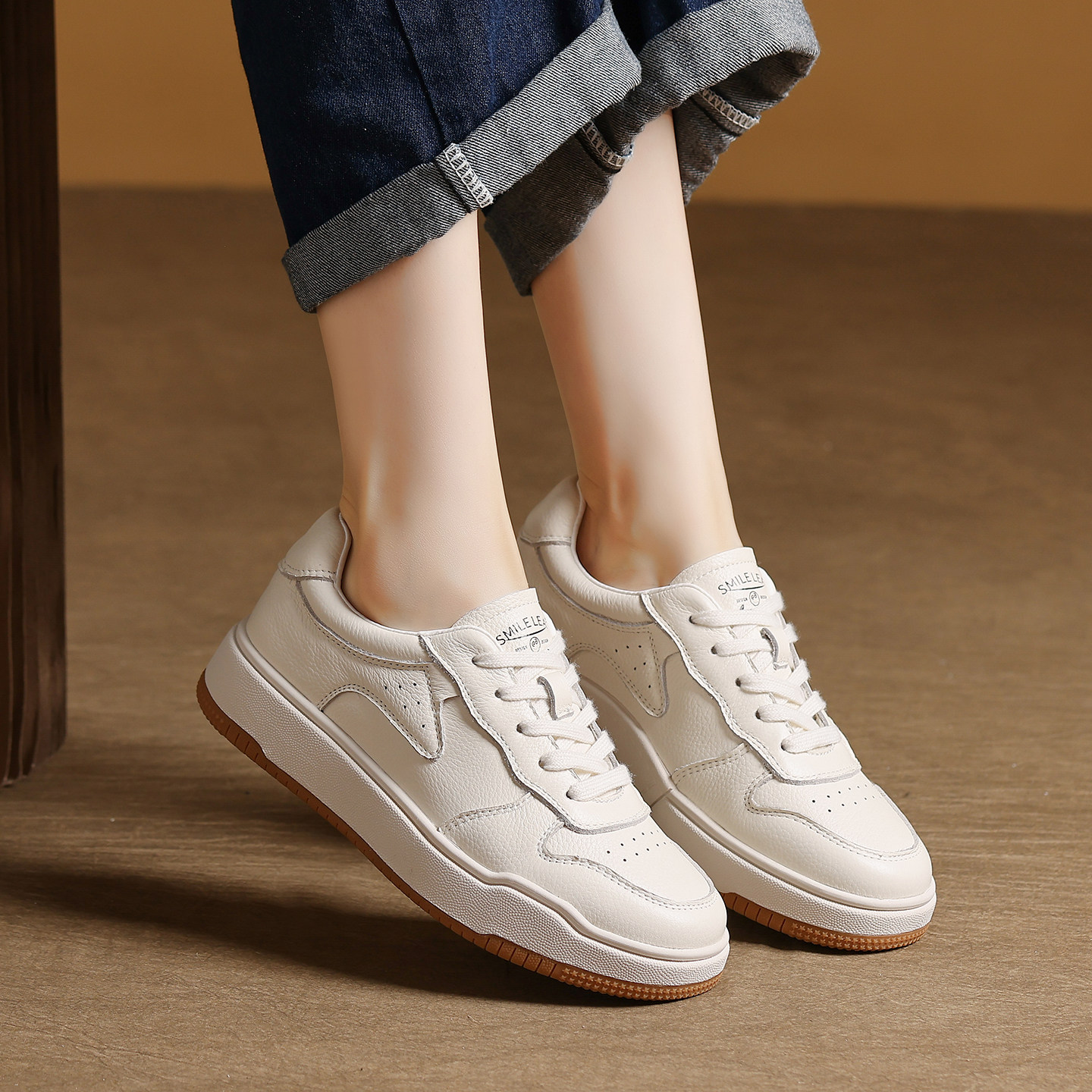 头层牛皮复古休闲板鞋女2025年新款百搭韩版皮面运动老爹小白女鞋