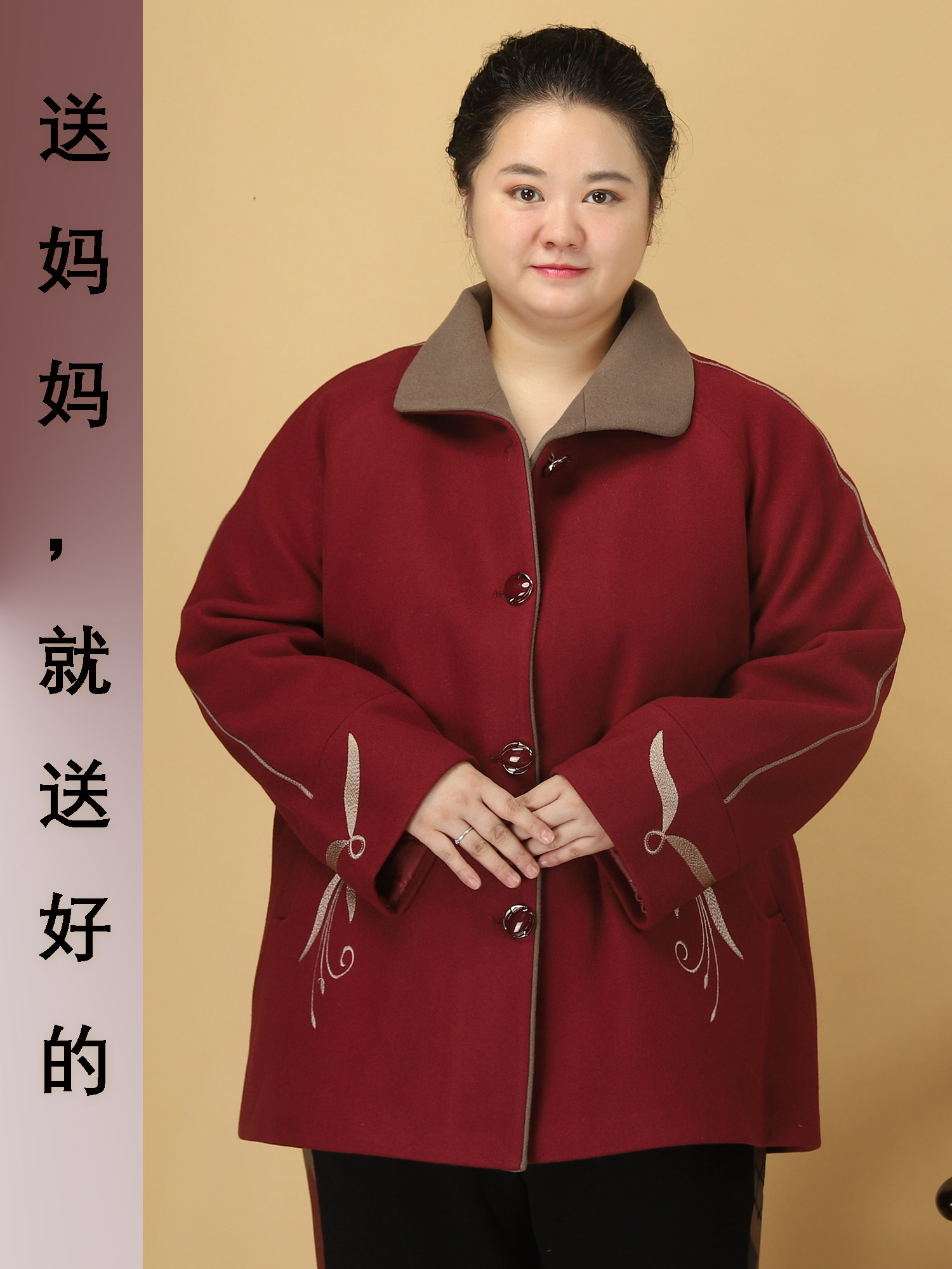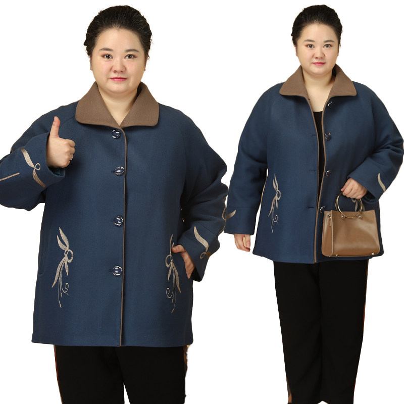 中老年人春秋装女奶奶外套加肥加大码胖妈妈秋季上衣夹棉毛呢大衣