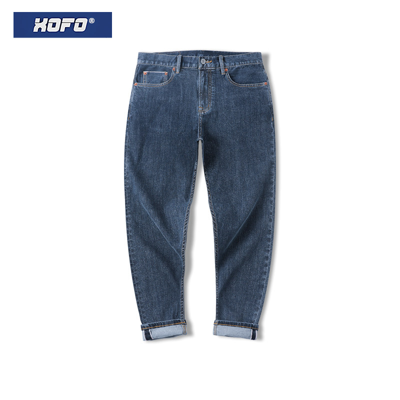 蓝灰色九分小脚锥形薄款牛仔裤2025新款男士冬季宽松直筒版型水洗