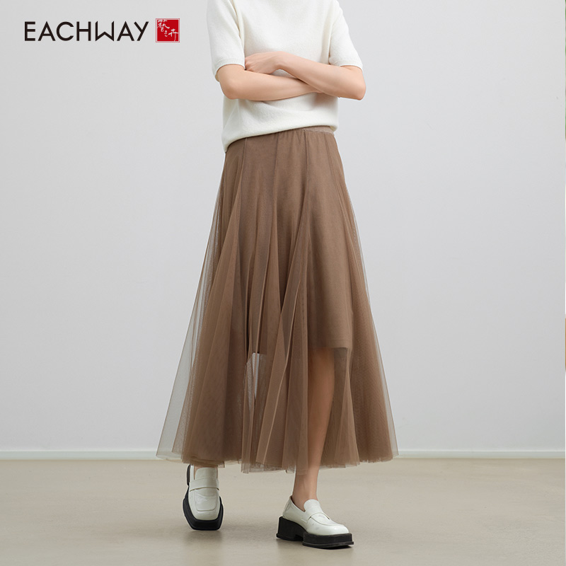 艺之卉疗愈系A摆半身中长款仙女网纱裙内含羊毛针织底裙25秋新款