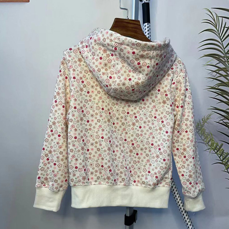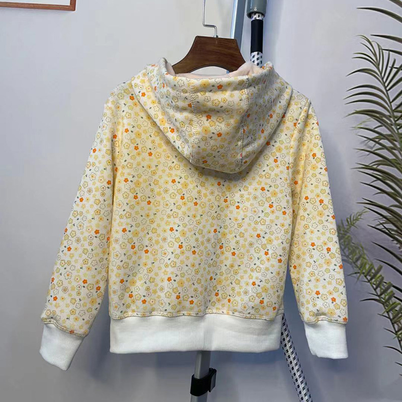 女童加绒拉链衫满印卫衣童装新款开衫外套连帽女孩春秋季中小童潮