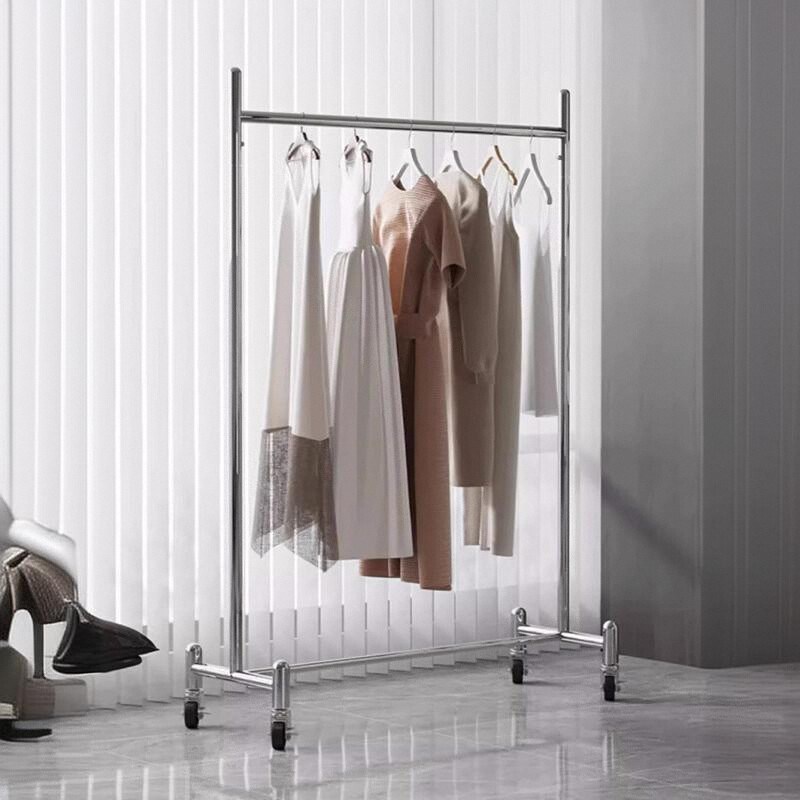 服装展示架挂衣架不锈钢新款落地架镜面衣帽架移动货架带轮晾晒架
