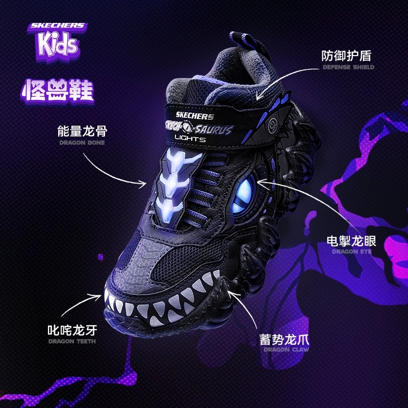 Skechers斯凯奇守护联盟中帮怪兽鞋闪灯秋冬款中大儿童休闲运动鞋