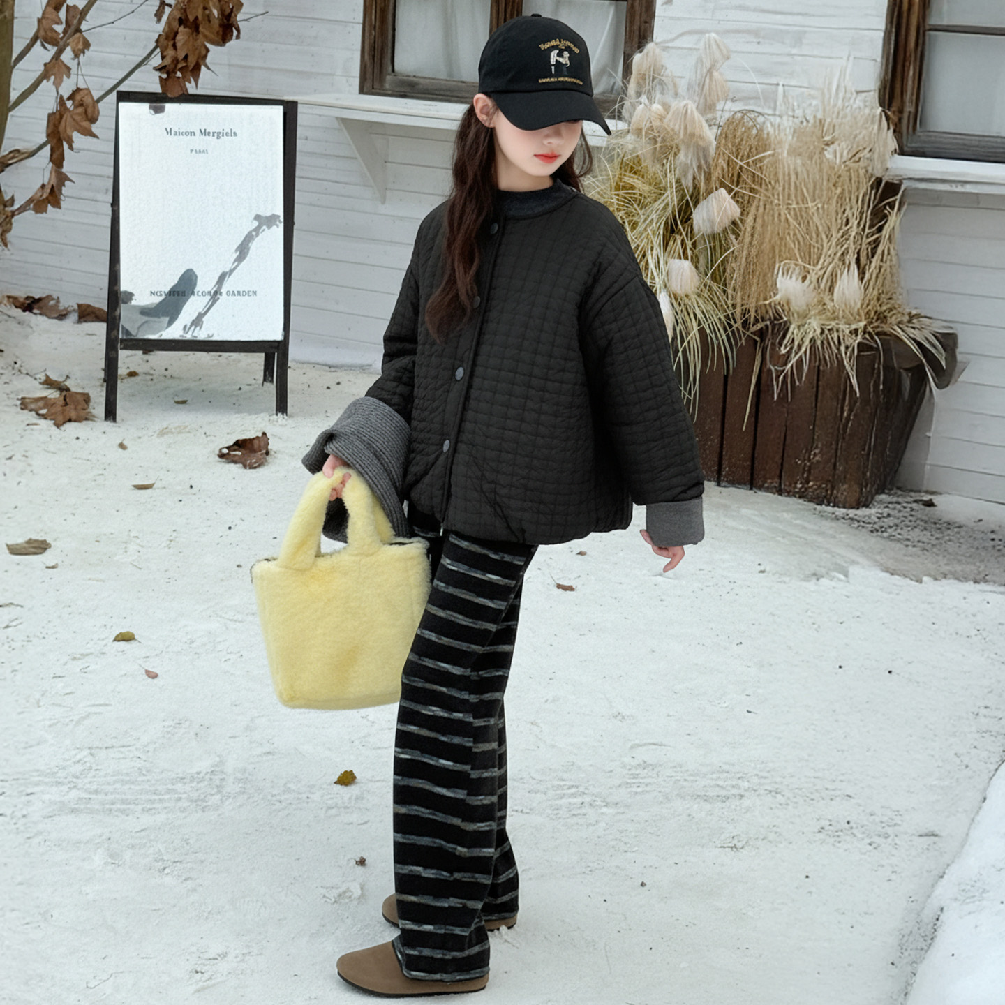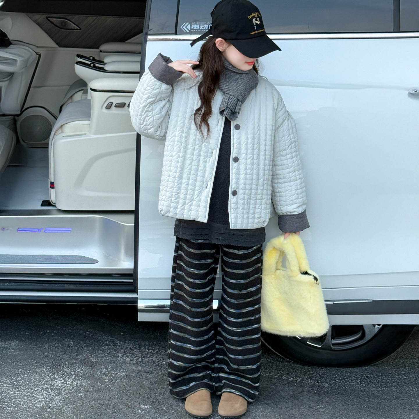 女童夹棉加绒秋冬装圆领棉服轻便