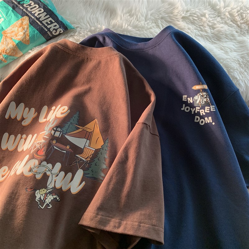 男士短袖t恤夏季新款美式复古重磅纯棉半袖青少年休闲宽松体恤衫