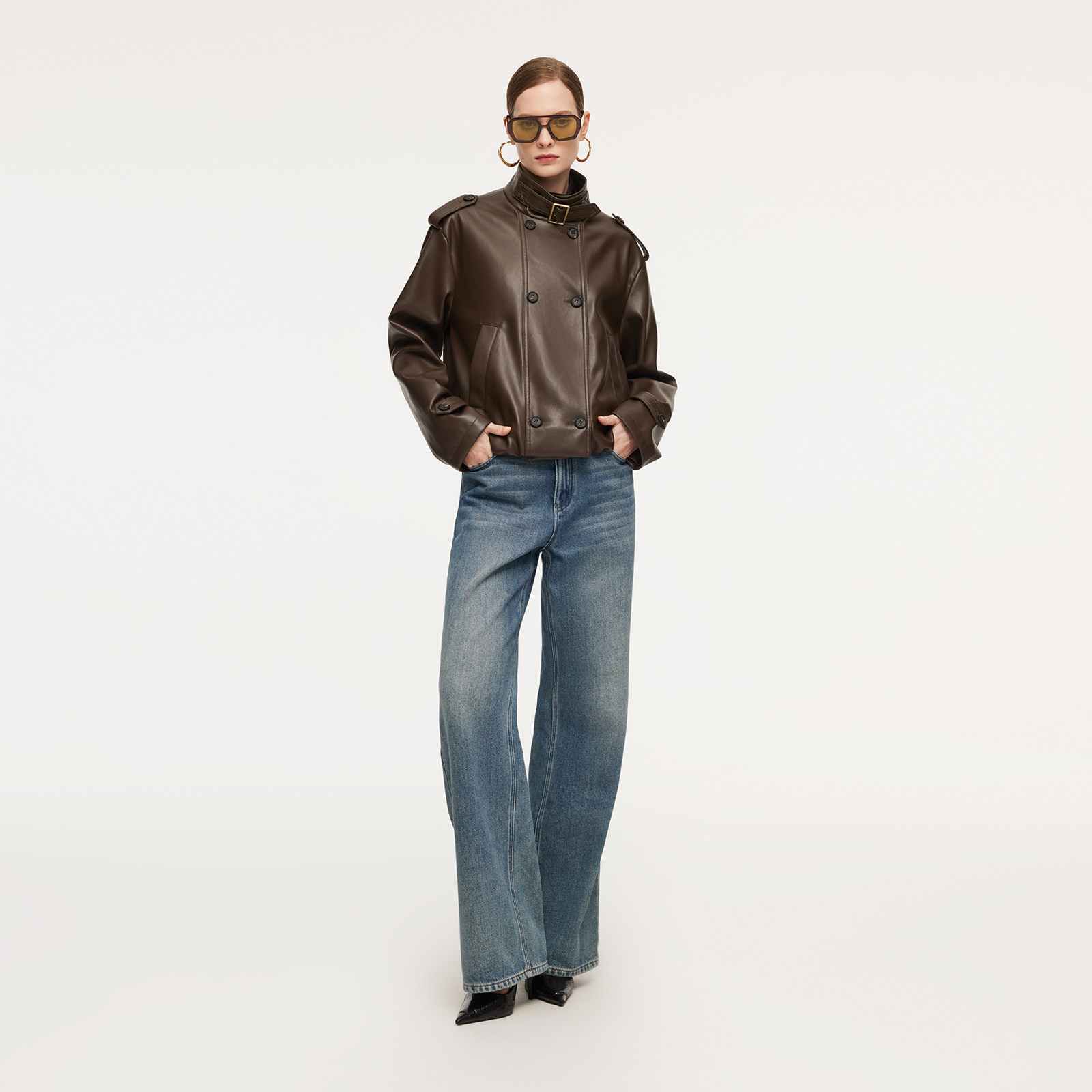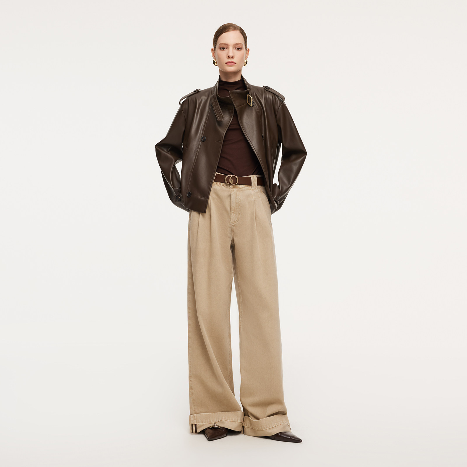 歌莉娅人造毛皮双排扣风衣女春季2026新款短款夹克外套1F1C6F560