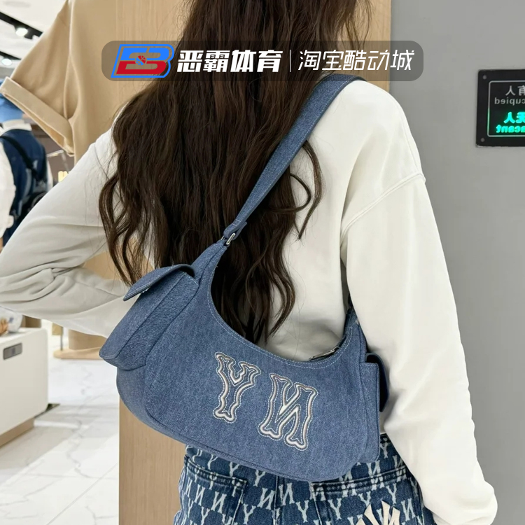 韩国MLB老花腋下包3ABQS011N时尚潮流挎包仿牛仔潮流单肩包3ABQ