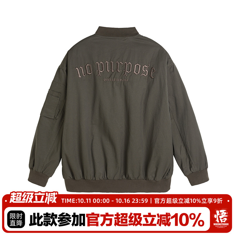 悟空有货美式刺绣字母飞行员夹克男复古宽松潮流百搭bf棒球服外套