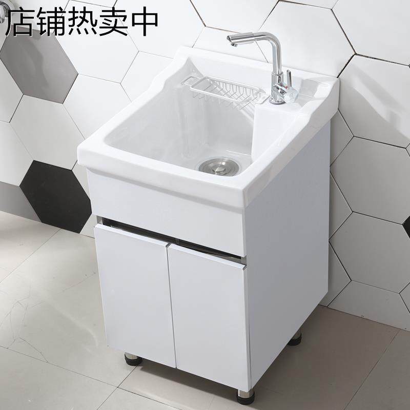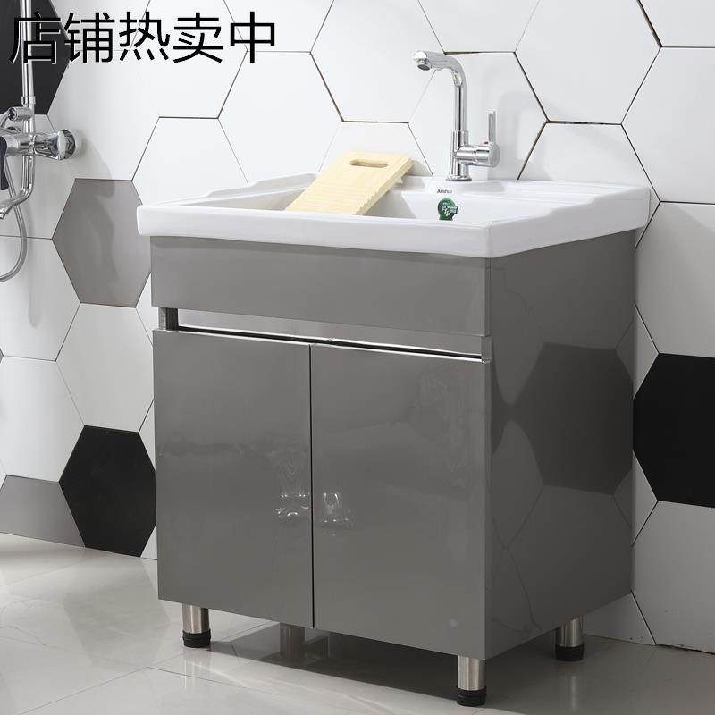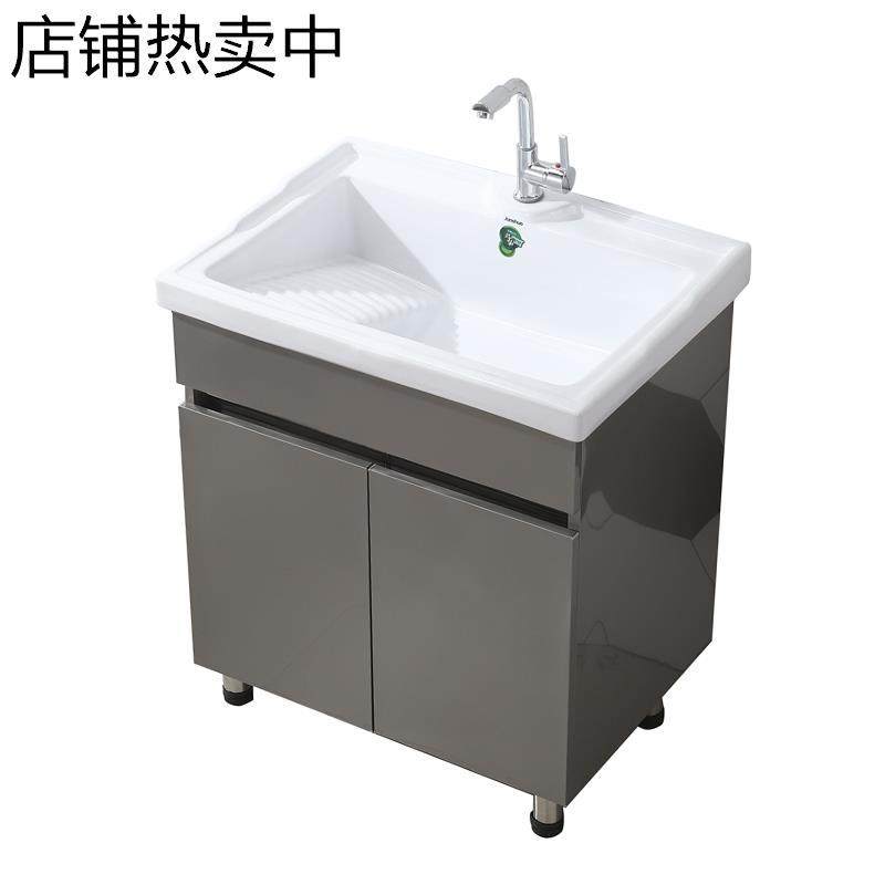 304不锈钢洗衣柜 阳台洗手池落地陶瓷用一体盆深槽带搓板洗衣池