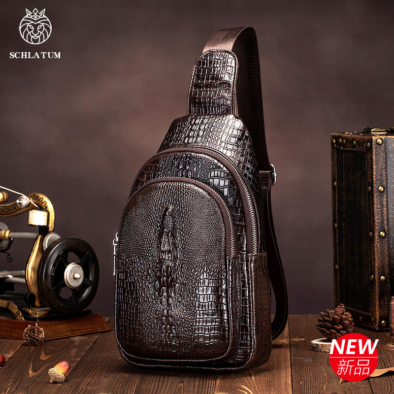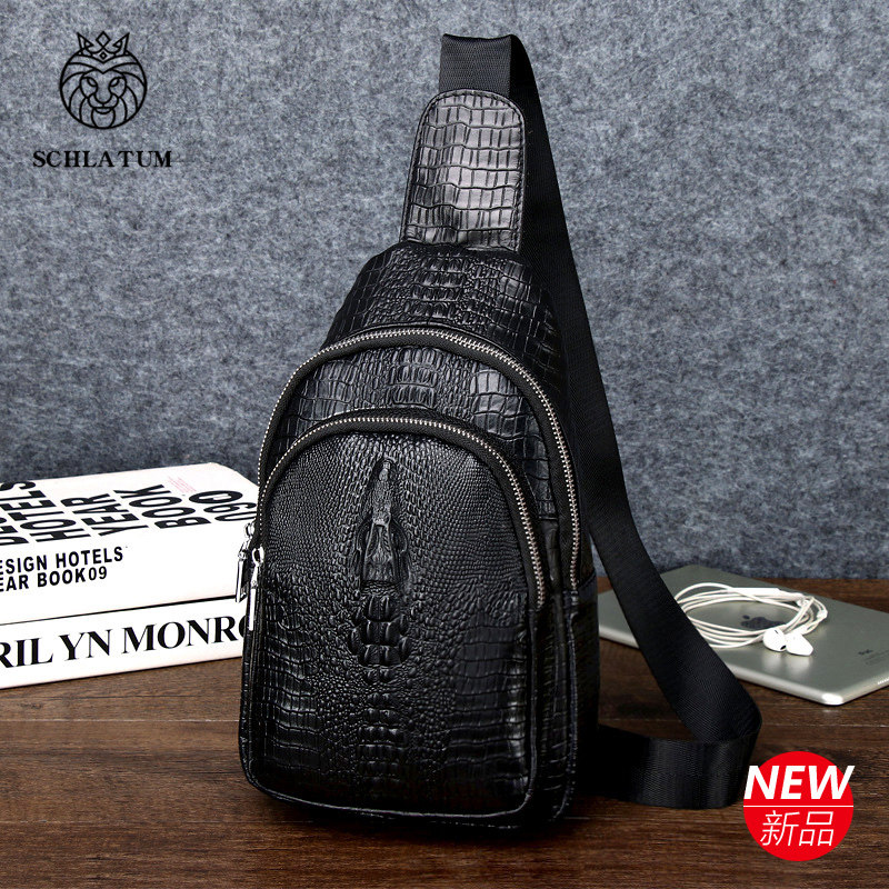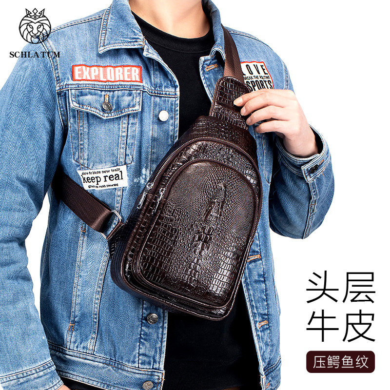 2026新款头层牛皮男士鳄鱼纹单肩斜挎包真皮胸包潮牌休闲旅游背包
