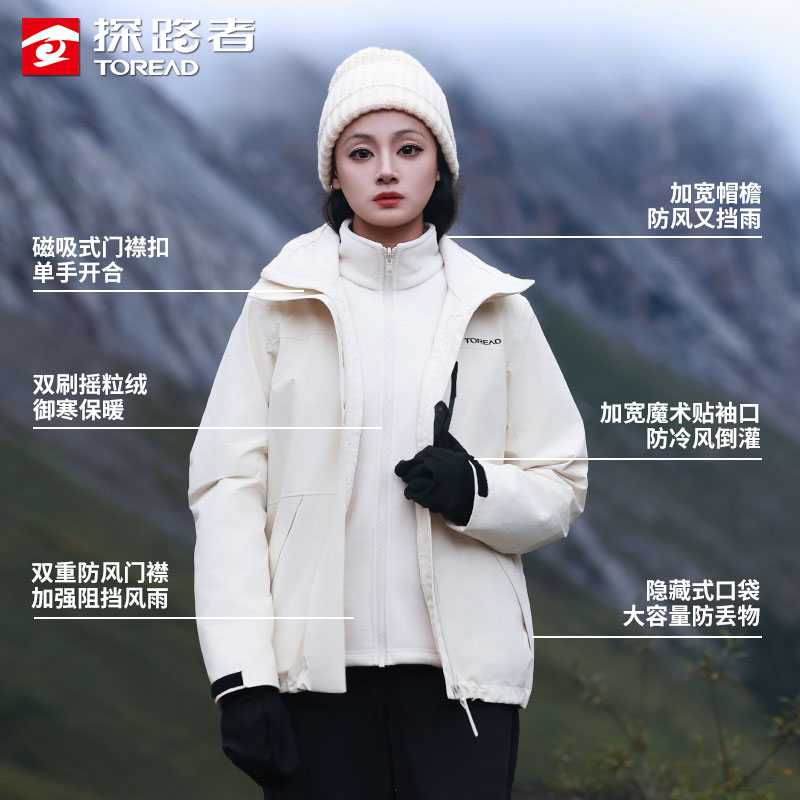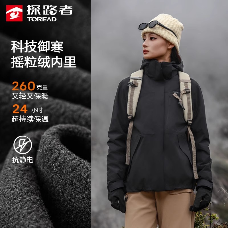 探路者三合一户外冲锋衣女款2025新款防水防风男士登山服加绒外套
