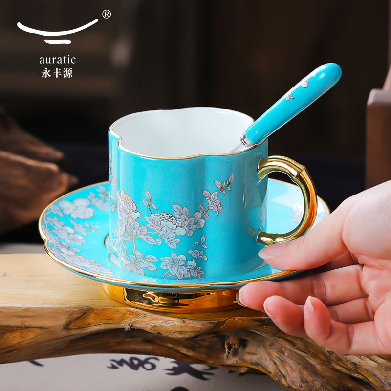 新品 永丰源水墨牡丹咖啡杯碟套装 陶瓷下午茶杯水杯轻奢礼品