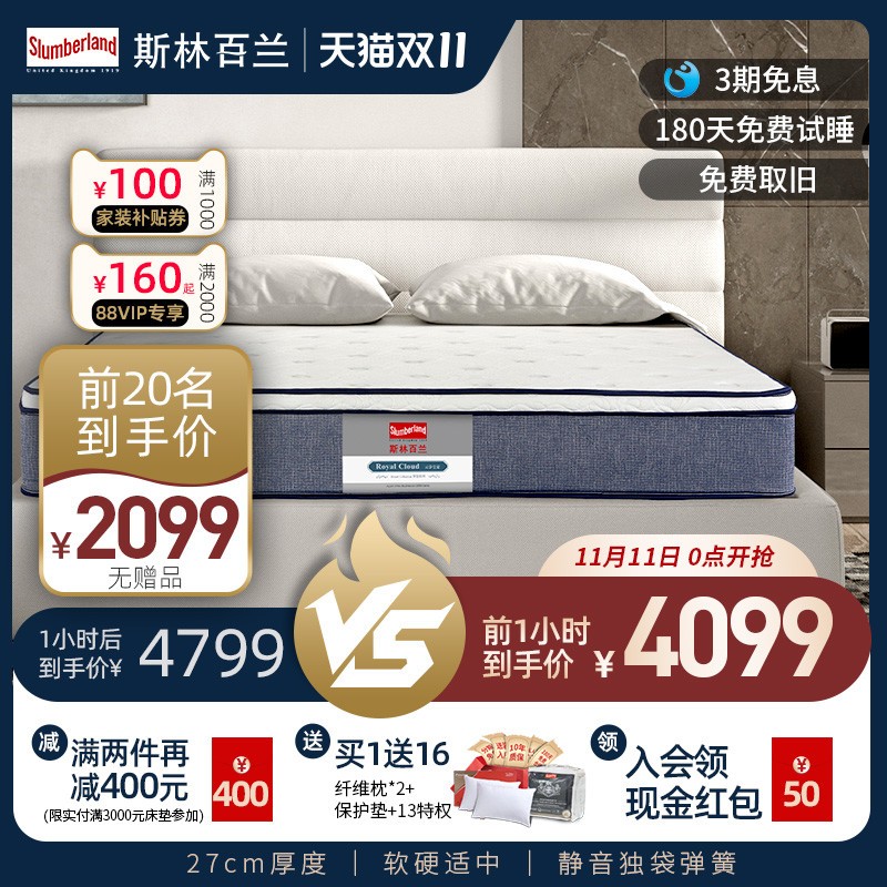 热销斯林百兰 云享皇家 乳胶床垫1.5米1.8双人防螨席梦思独立弹簧