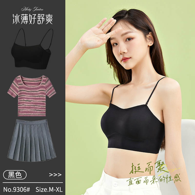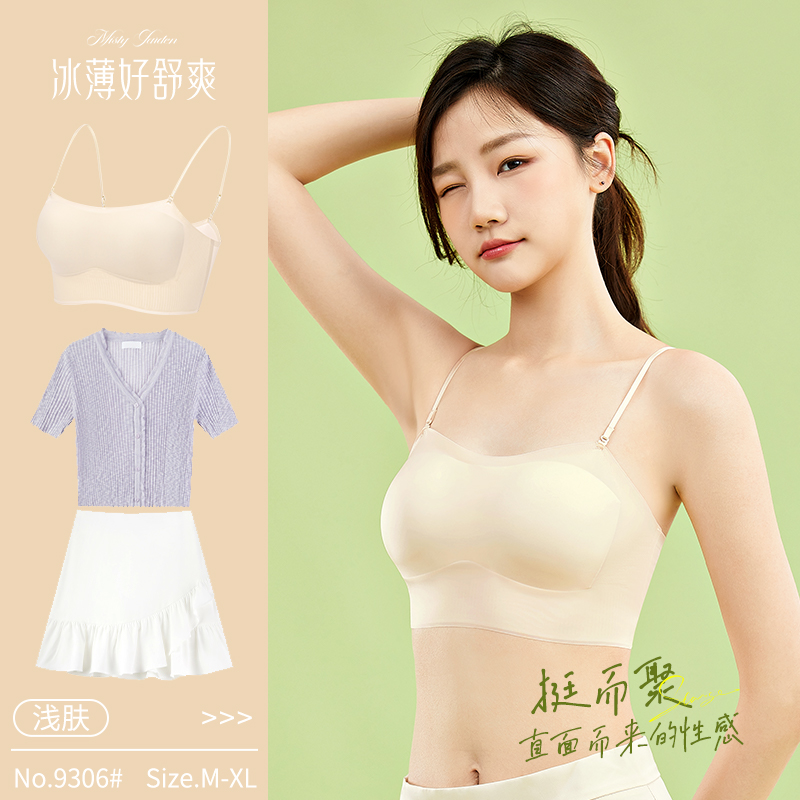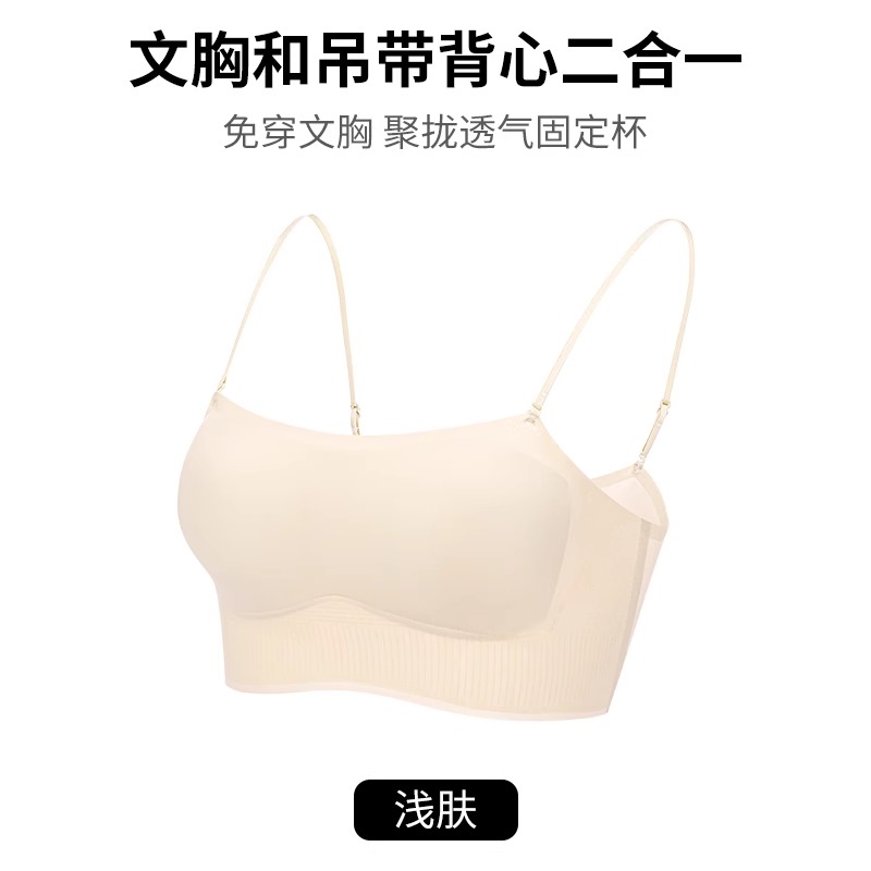 美背内衣女无痕薄款裹胸防走光带胸垫文胸一体细肩带吊带背心抹胸
