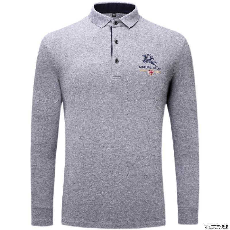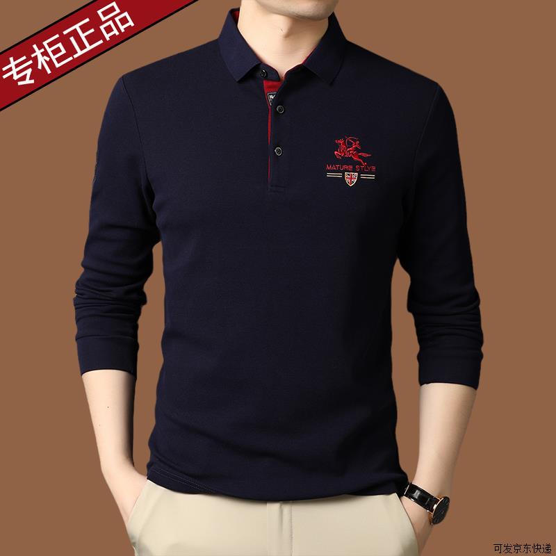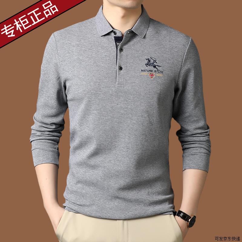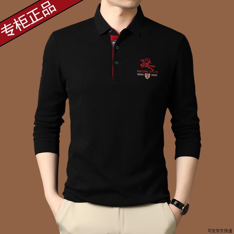 GABBANIE品牌长袖T恤男翻领纯棉POLO衫 刺绣春秋高档男装上衣白色