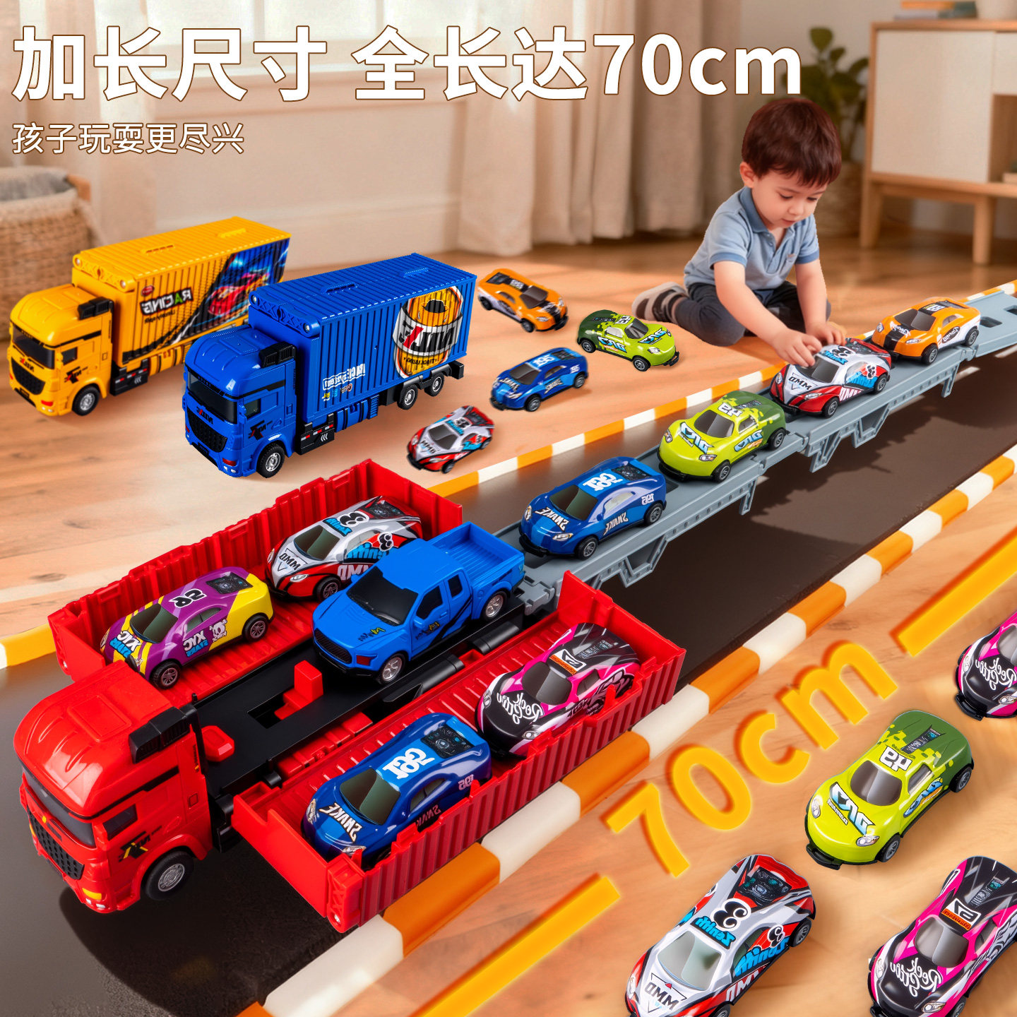 货柜车玩具宝宝小汽车惯性合金拖车变形轨道车男孩3到6岁网红新款