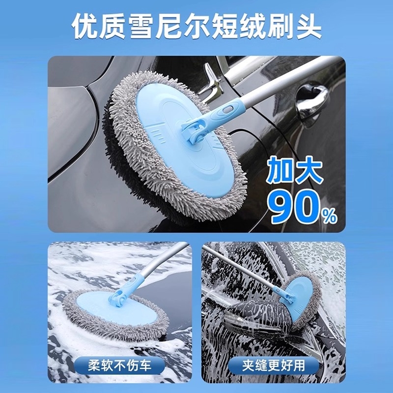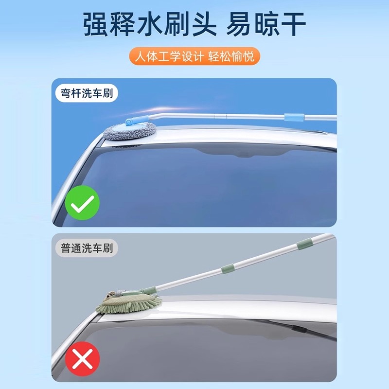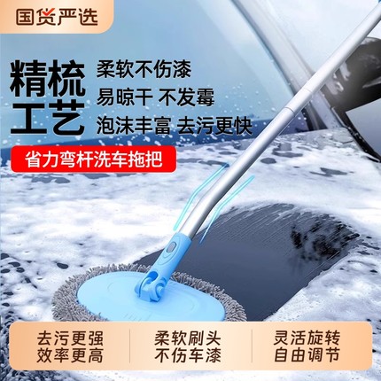 弯杆伸缩洗车拖把不伤车漆软毛刷