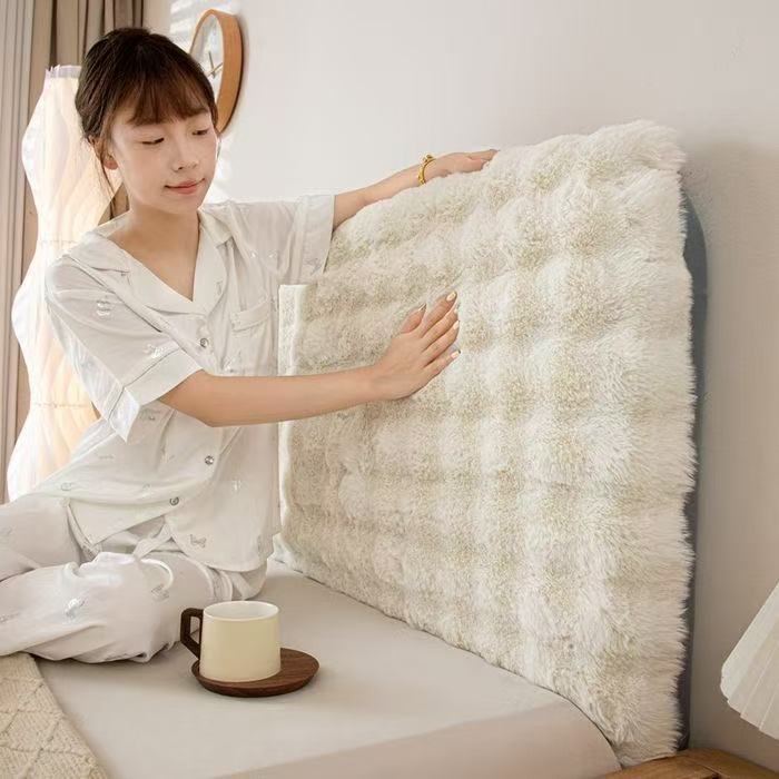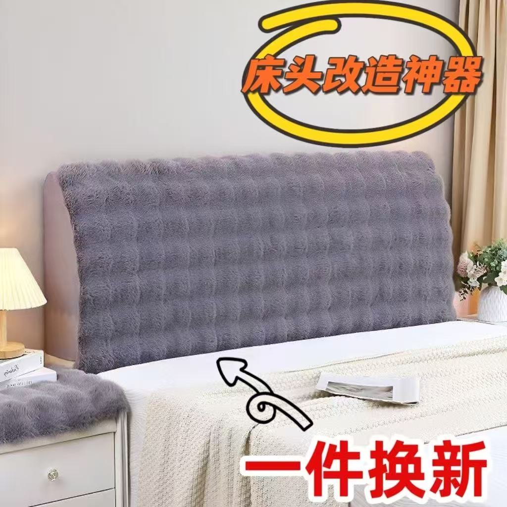 新款加厚兔毛绒全包床头罩现代简约软包床头靠背套超柔软高档通用