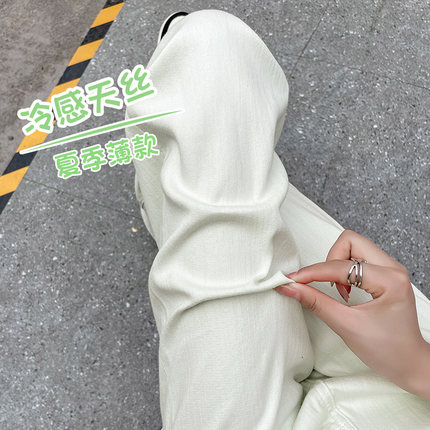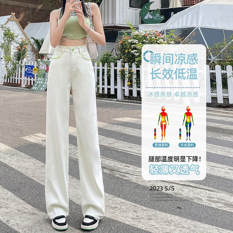 天丝牛仔裤女夏季薄款2025新款高腰显瘦直筒毛边窄版白色阔腿裤子