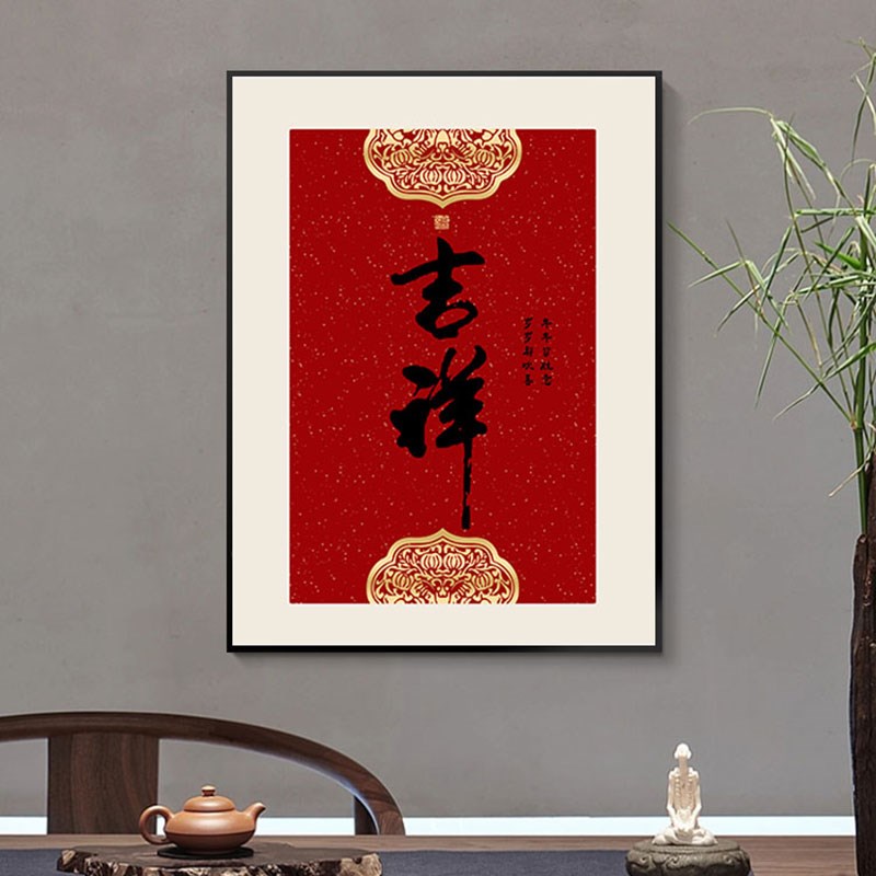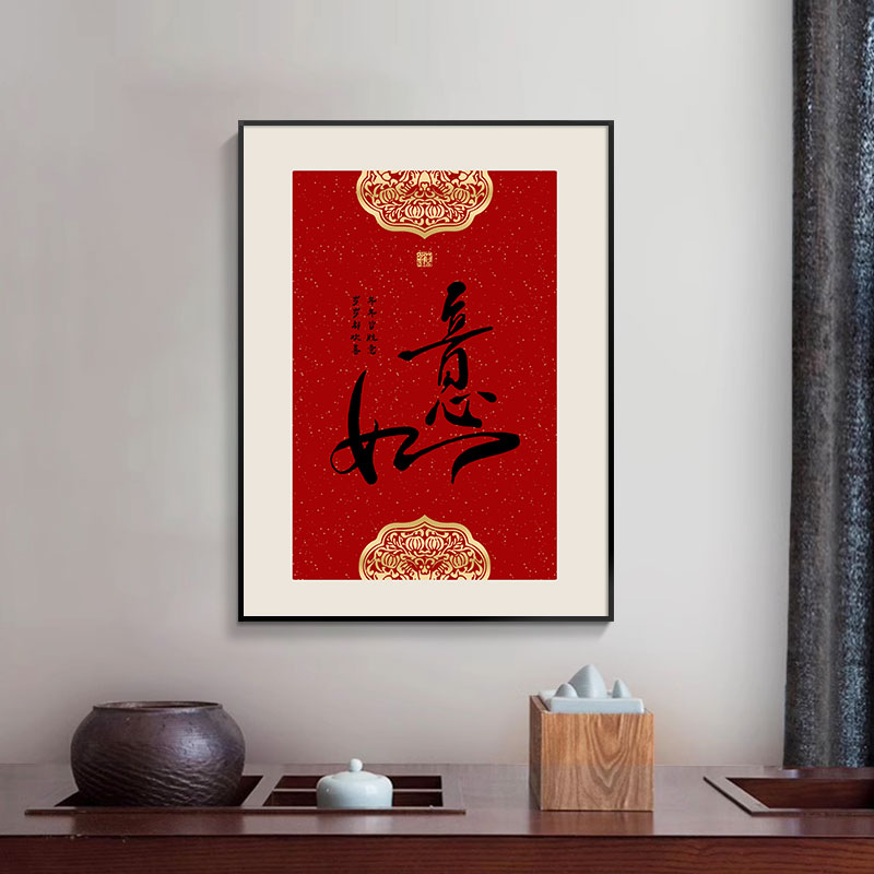 中式电表箱装饰画吉祥如意餐厅墙面竖款强电闸开关遮挡遮丑餐厅画