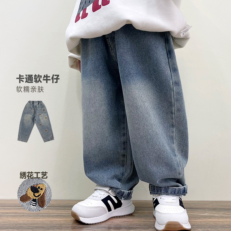 男童软牛仔裤春秋季新款儿童洋气秋装长裤男孩宝宝秋款直筒裤子潮