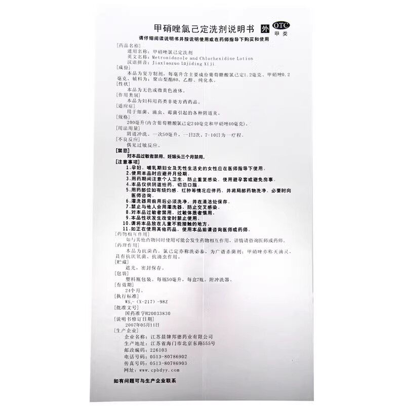 【伊人】甲硝唑氯己定洗剂0.2mg1.2mg*50ml*7瓶/盒