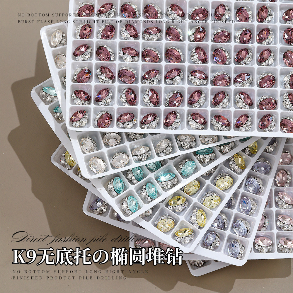 K9无底托椭圆堆钻爆闪美甲钻旦形透明鸽子蛋美甲饰品成品指甲钻球