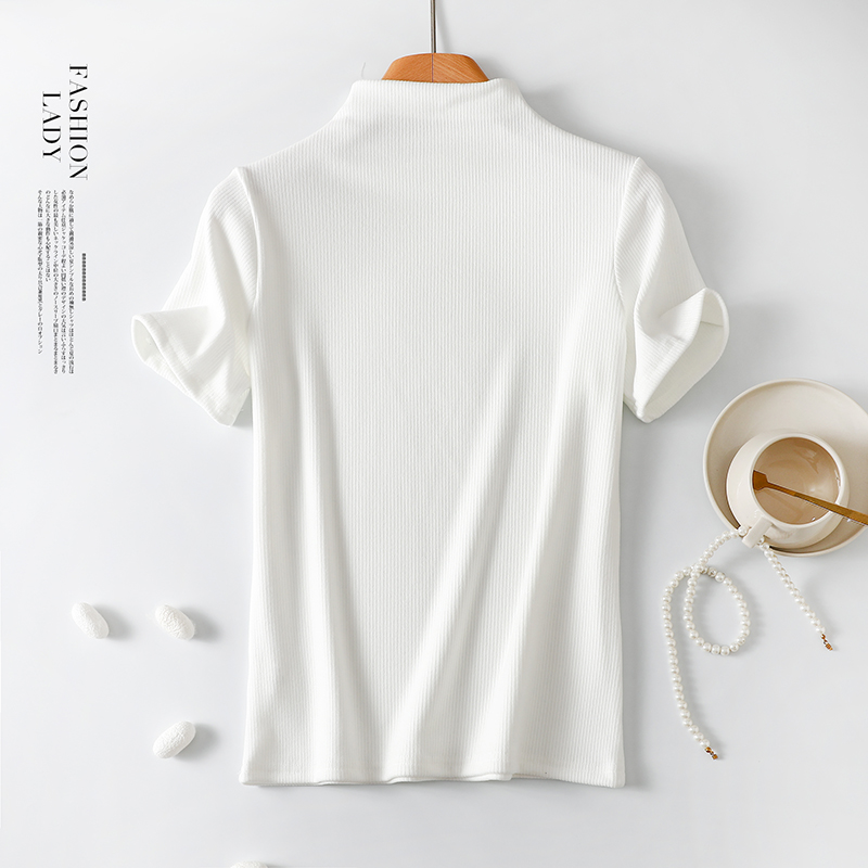 螺纹德绒保暖内衣女秋冬新款T恤短袖打底衫半高领棉内搭秋衣