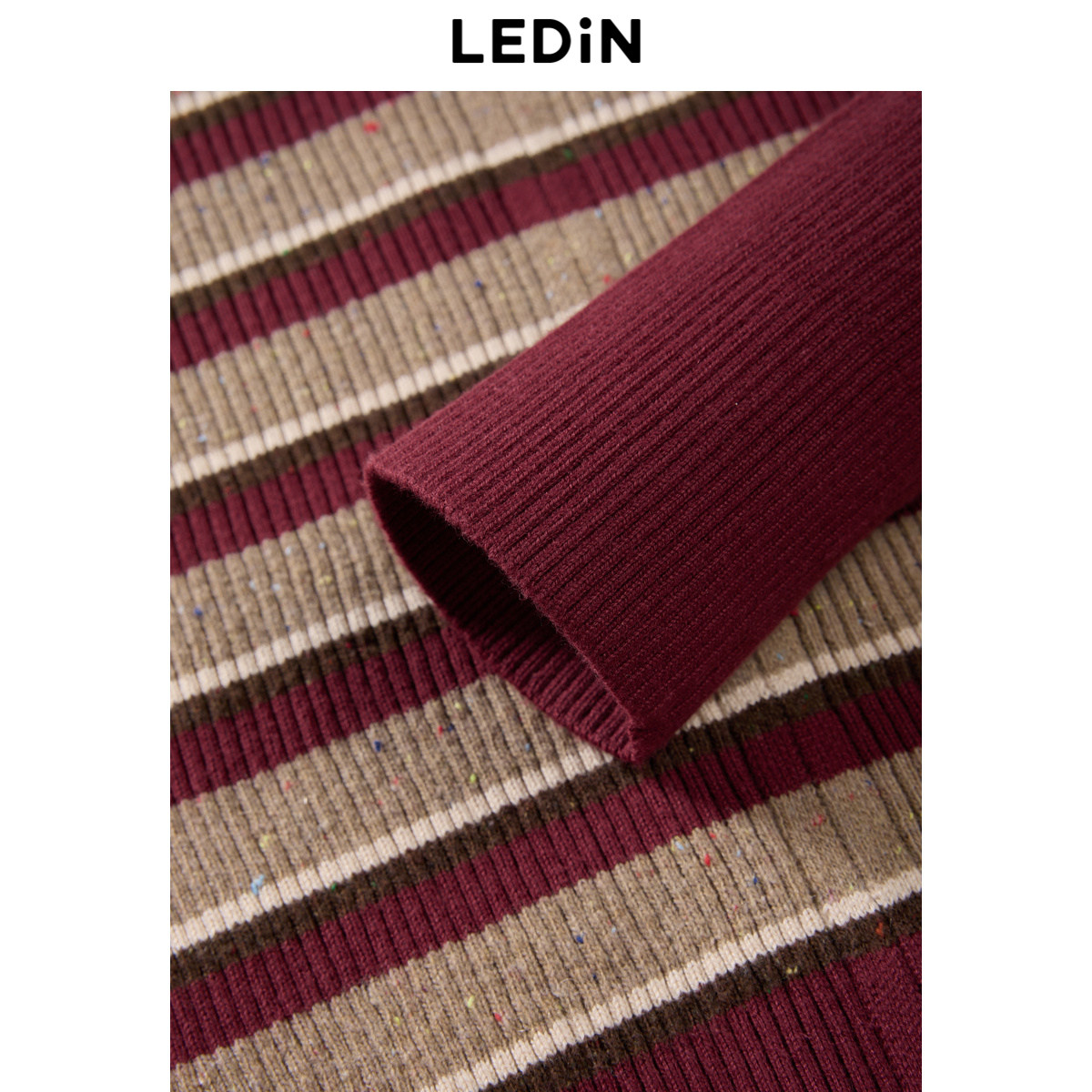 【商场同款】乐町彩色条纹插肩袖线开衫女冬季新款针织毛衣