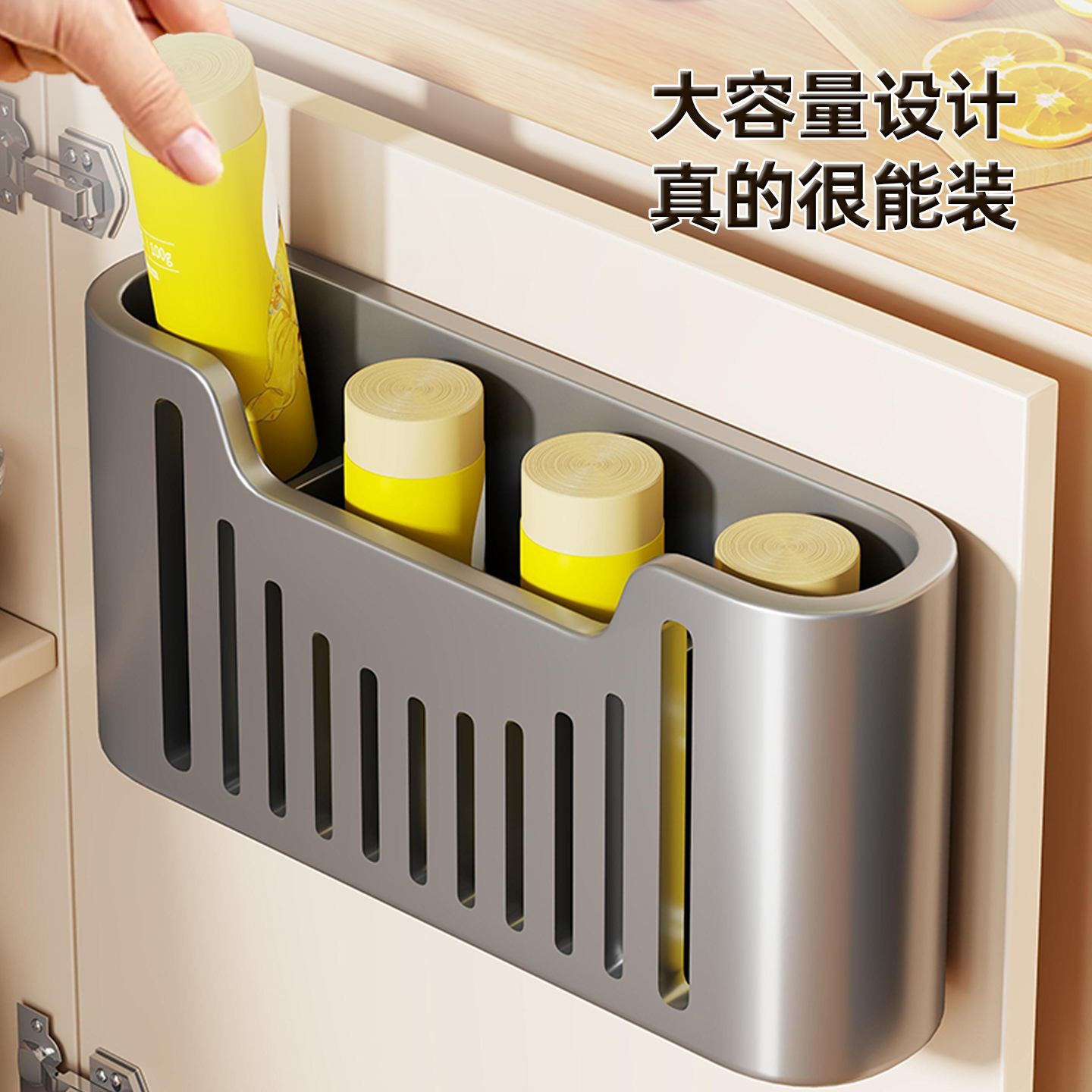 厨房橱柜门上置物架柜门内侧免打孔保鲜膜收纳架塑料垃圾袋储物盒