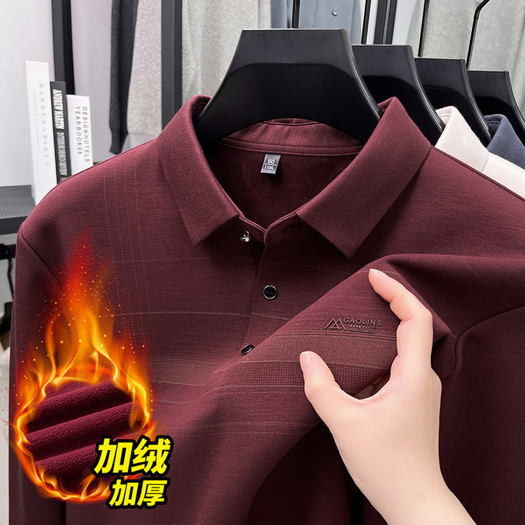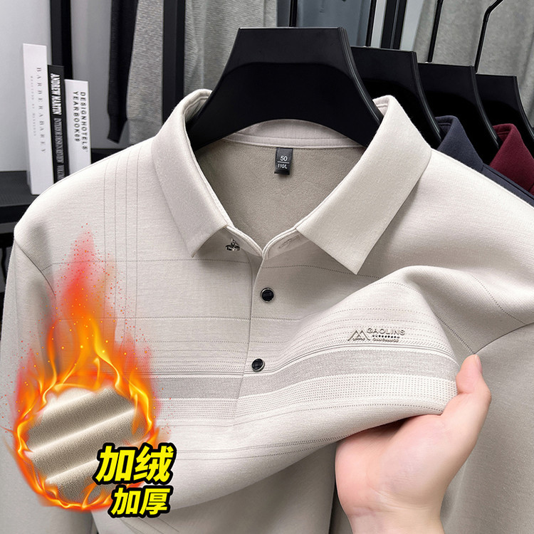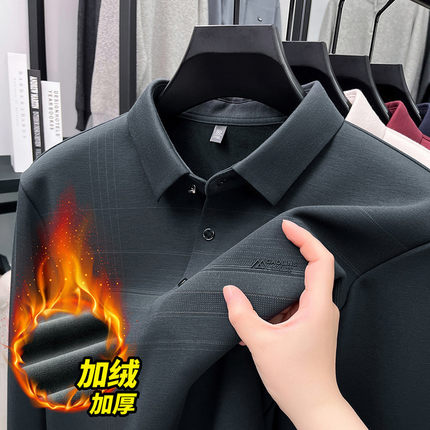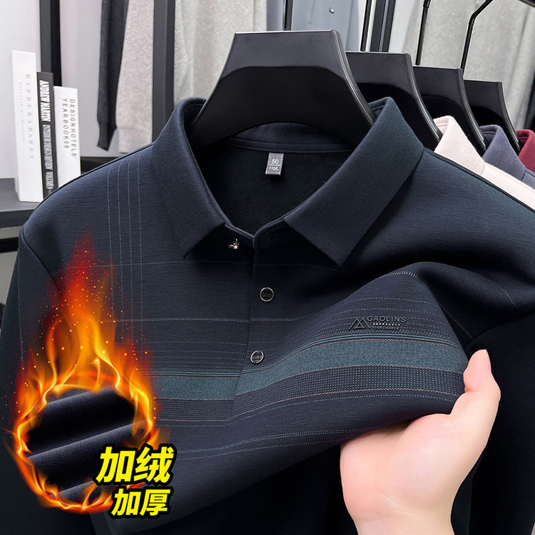 中青年新款男装秋冬季新款长袖polo衫加绒加厚保暖t恤衫百搭休闲