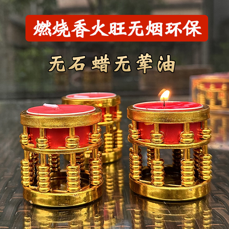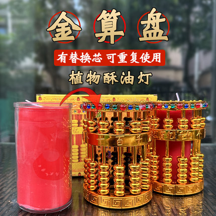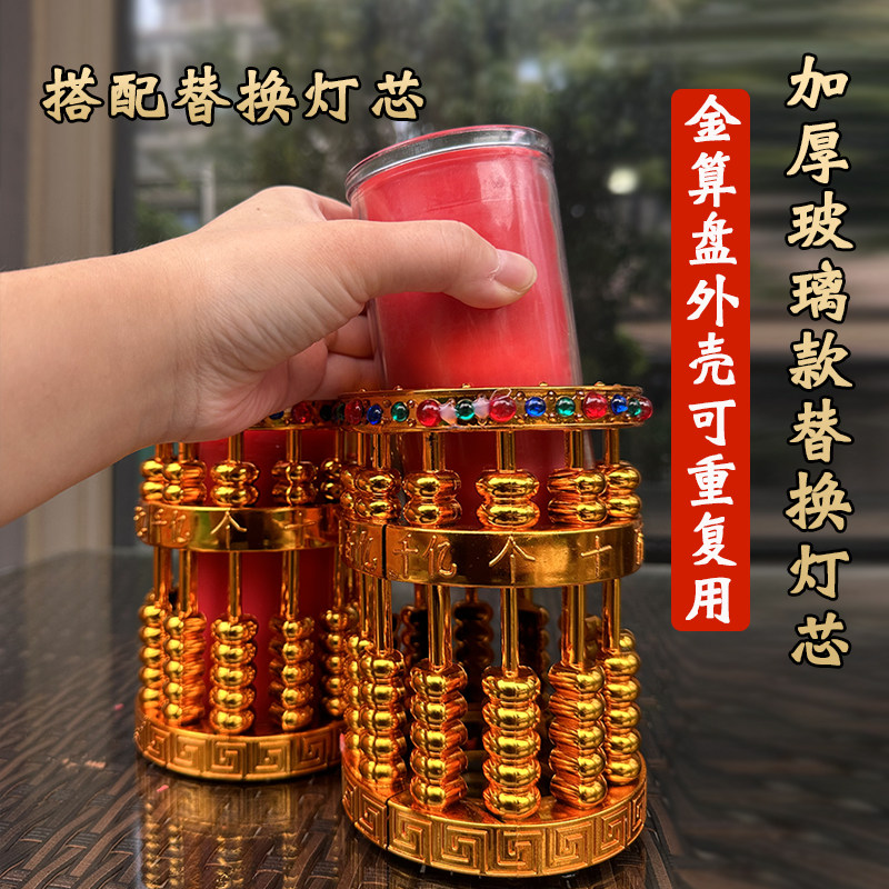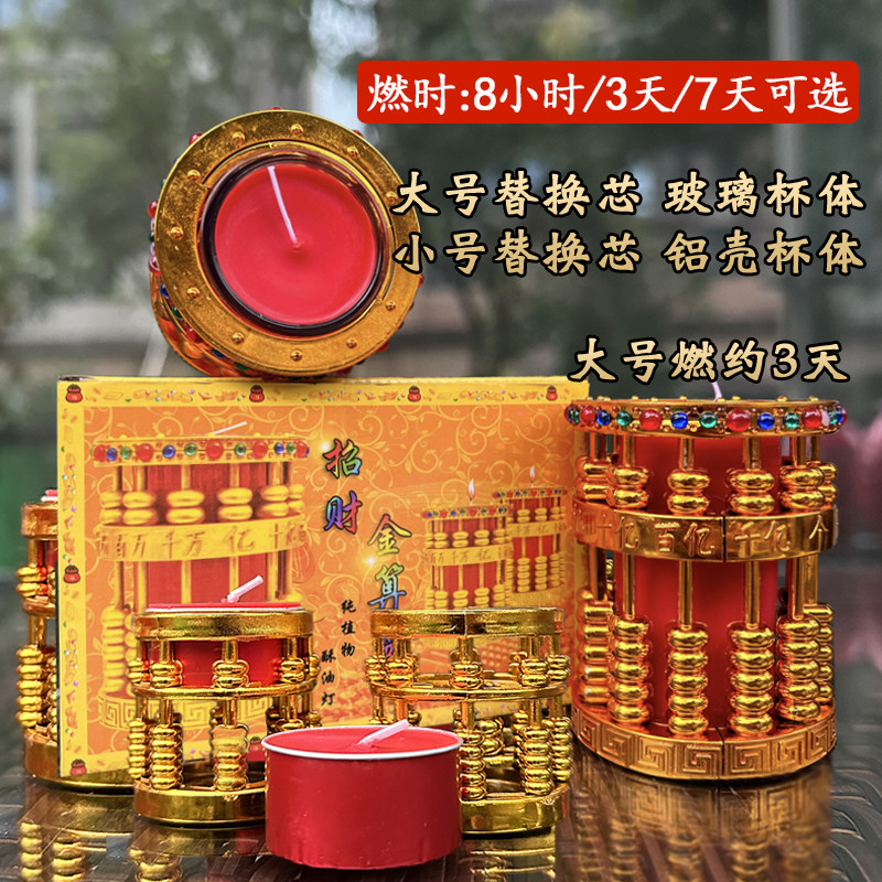3天玻璃杯金算盘招财灯无烟蜡烛家用供灯酥油灯座供佛8小时招财灯