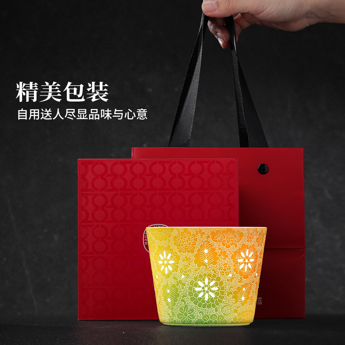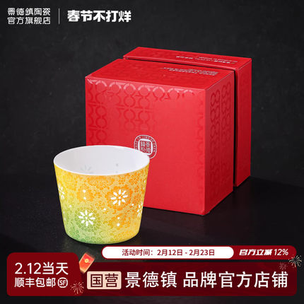 景德镇官方陶瓷玲珑茶杯手工扒花直口杯家用暖手杯高档新年礼物