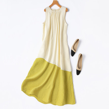 文艺脱俗!自带清凉!撞色!真丝干丝dry silk圆领背心裙连衣裙