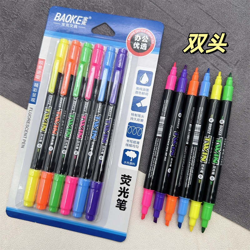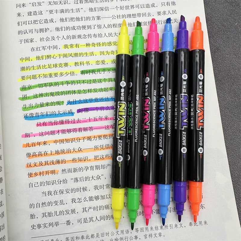 荧光笔ins高颜值双头荧光标记笔宝克学生课堂做笔记划重点记号笔
