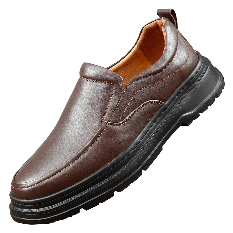 外贸男鞋春秋冬新款真皮套脚商务休闲皮鞋男软底软面轻便正装皮鞋