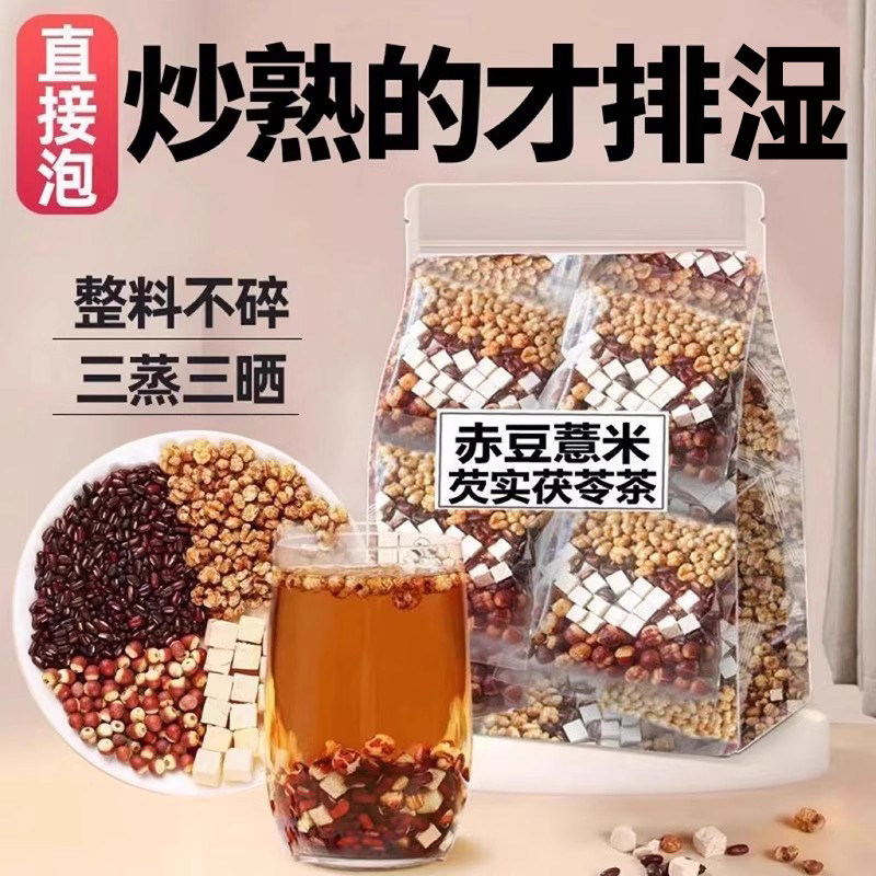 炒熟芡实赤豆薏米茶非祛湿茶红豆茯苓薏湿茶非去除湿气排养体寒毒