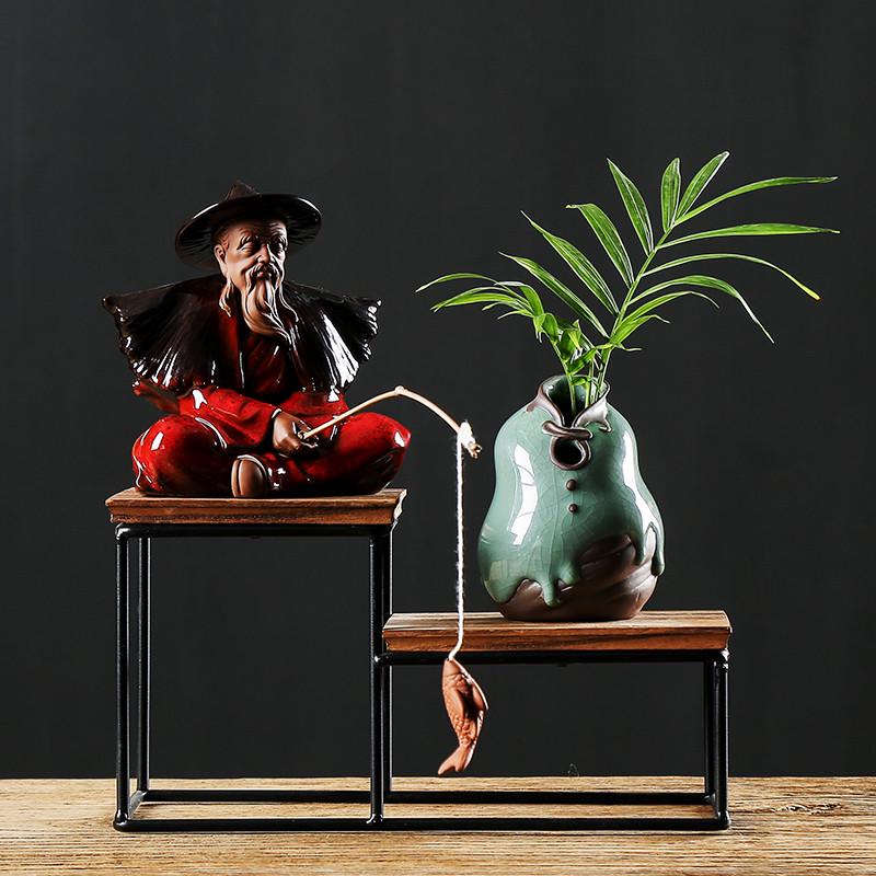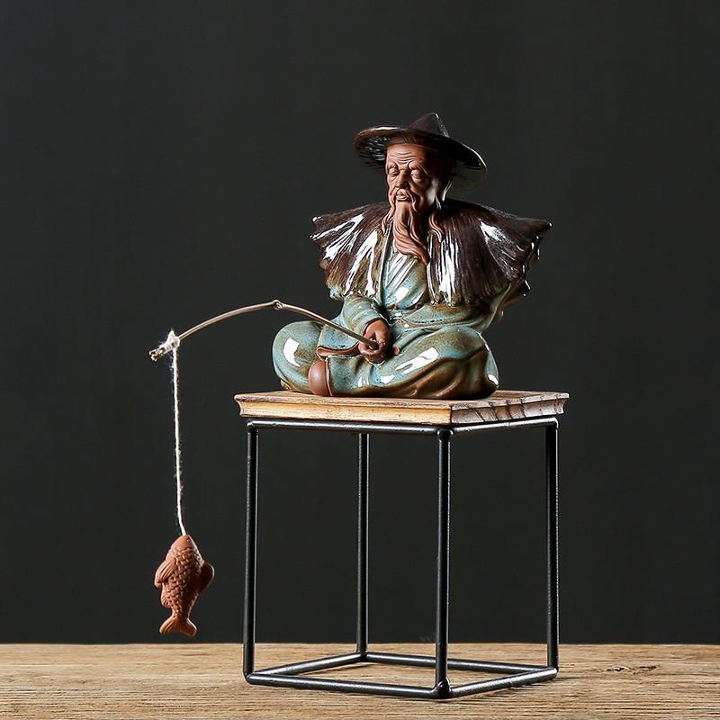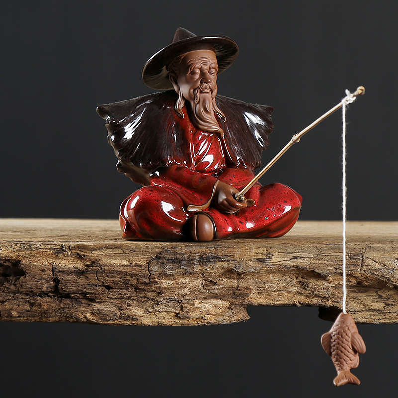 久造陶瓷中国风姜太公钓鱼摆件创意户外假山鱼缸盆景造景装饰配件