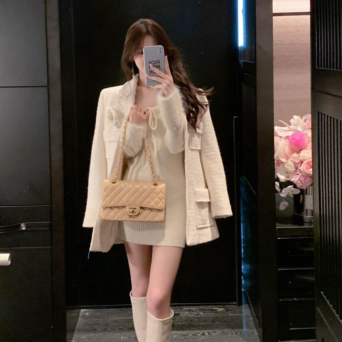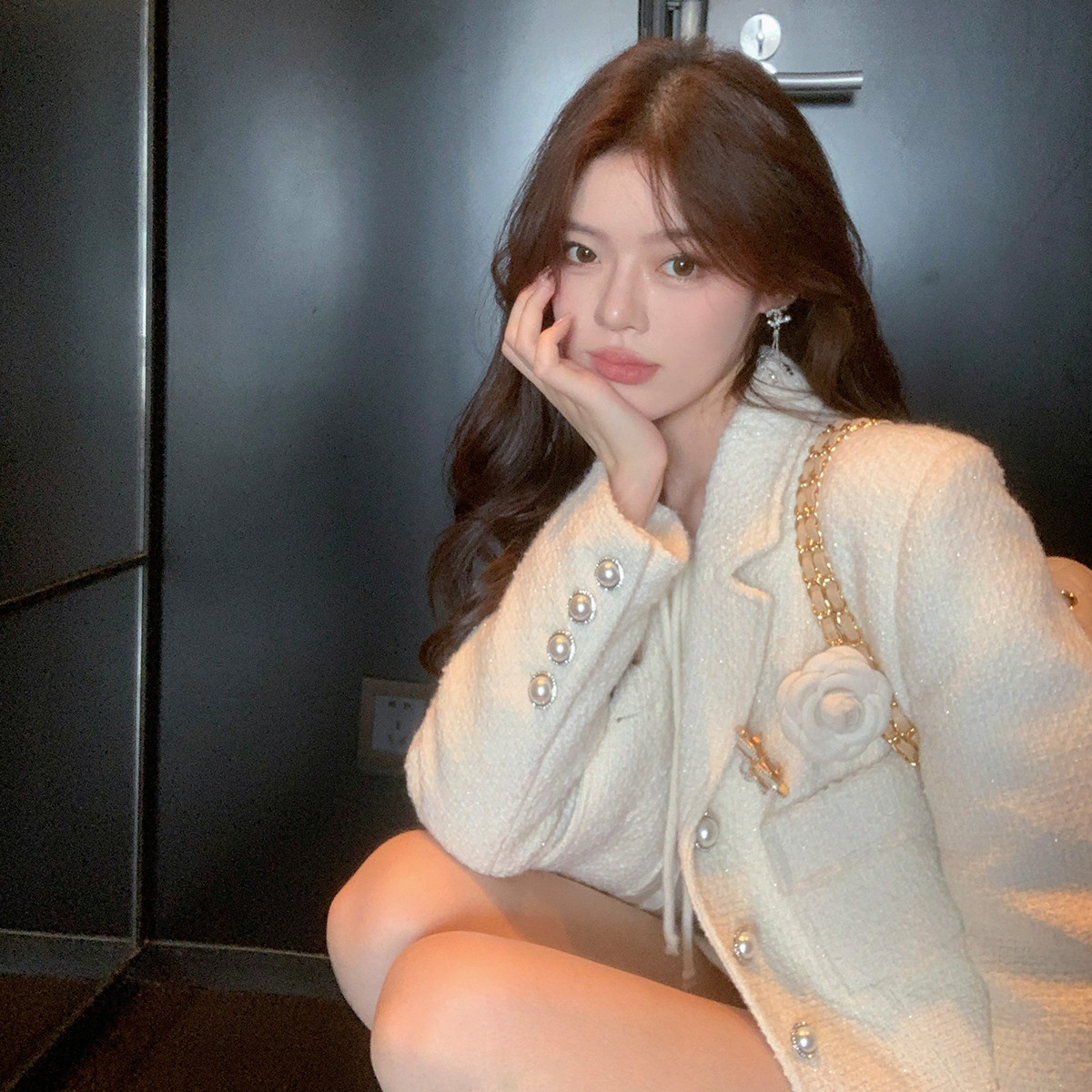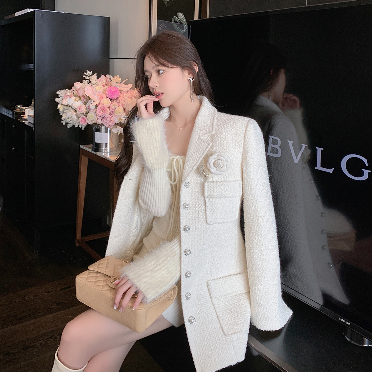 ByYou 冬季高级白色重工小香风毛呢外套女中长款呢子大衣内胆羽绒