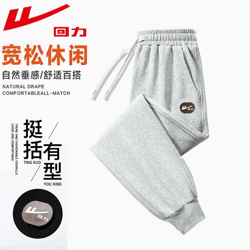 回力新款棉质休闲卫裤春秋冬季男女士束脚百搭大码运动宽松裤子男