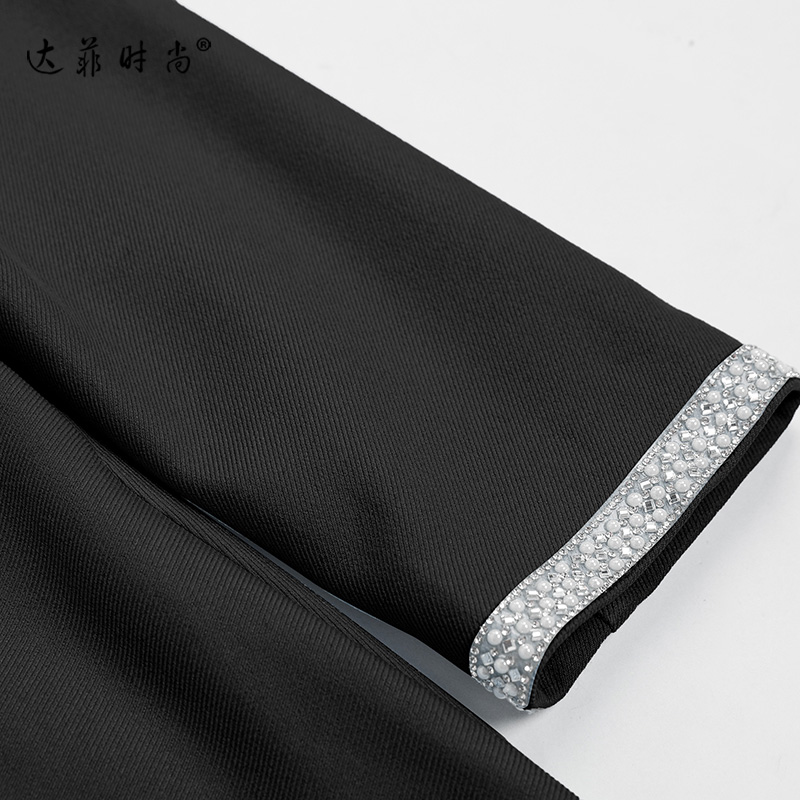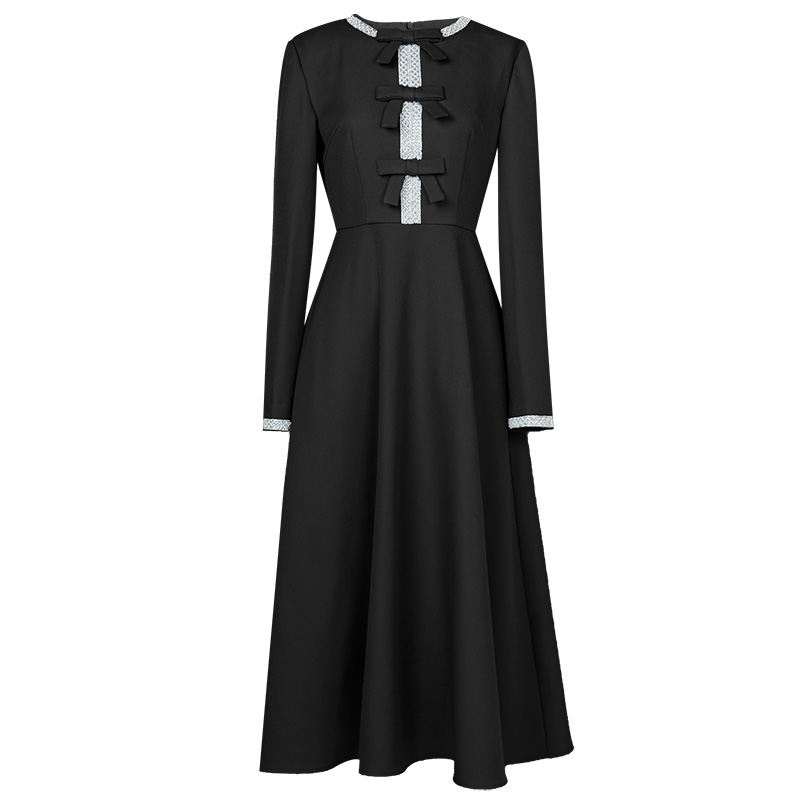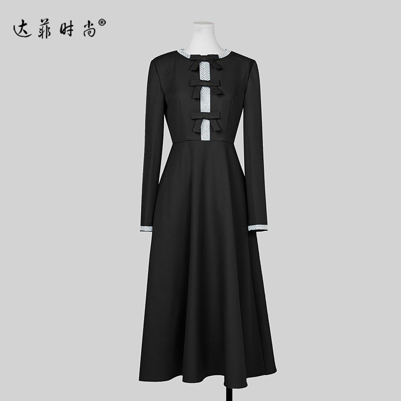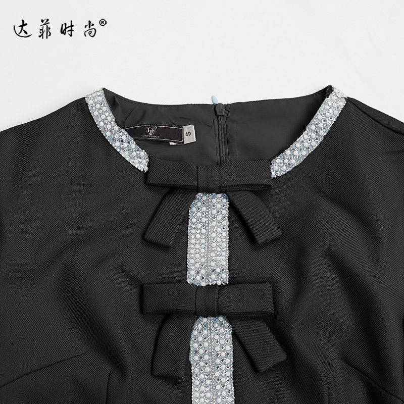 2025秋冬季钉珠镶钻蝴蝶结设计名媛奢华收腰大摆长裙连衣裙